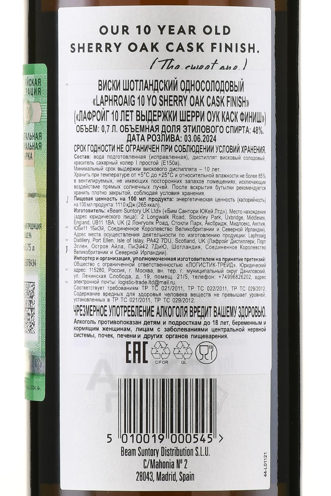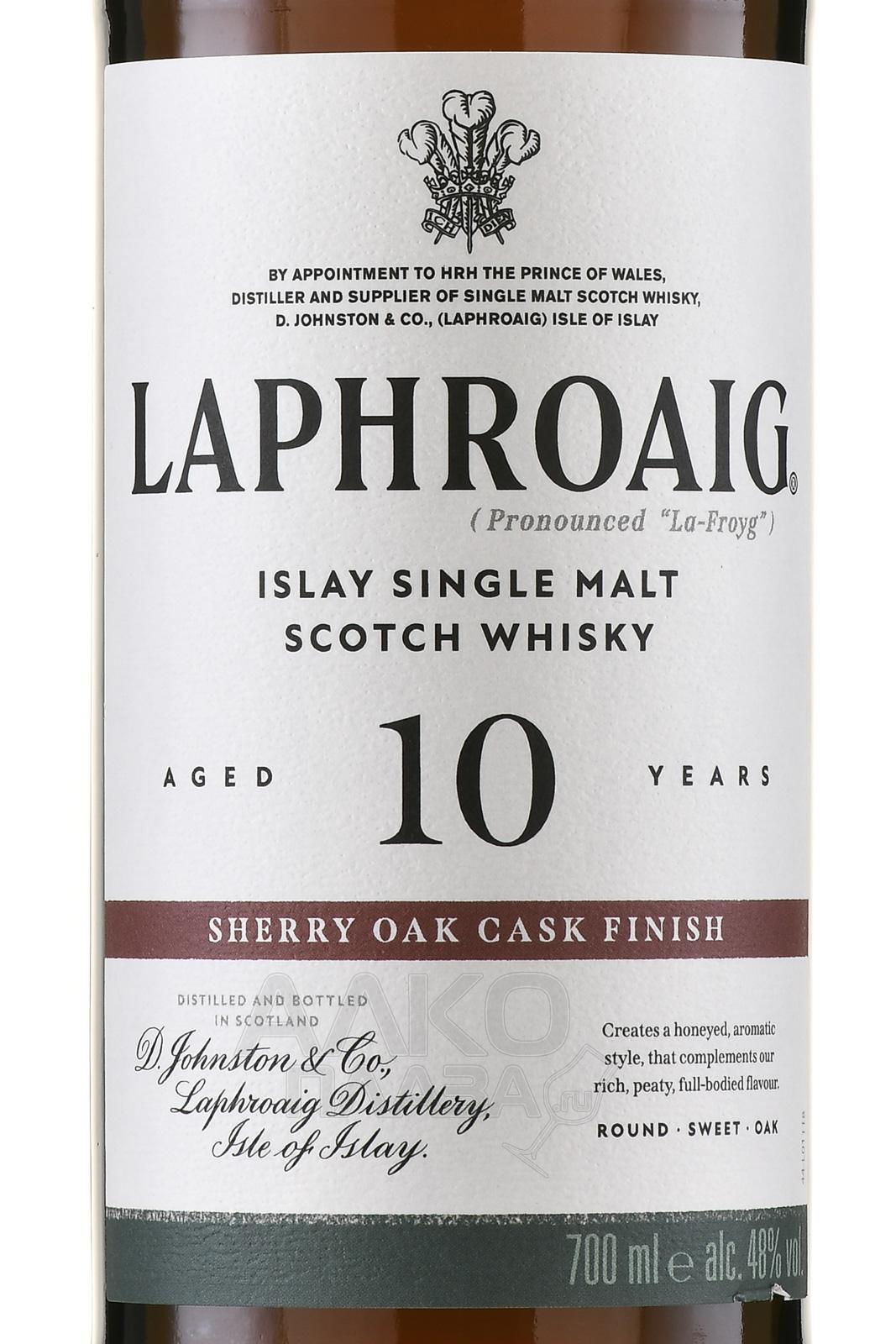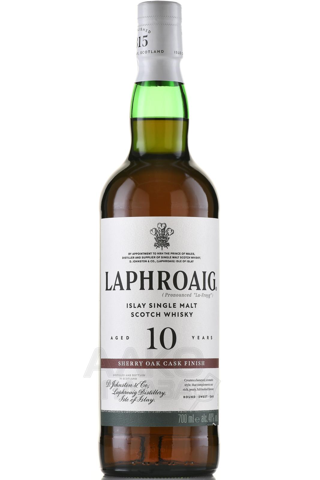 Виски Laphroaig 10 лет Sherry Oak Finish 0,7 л в п/у — это односолодовый скотч с острова Айла, сочетающий традиционный стиль дистиллерии с мягкостью хересной выдержки. Основу составляет дистиллят, созревавший в бочках из-под бурбона, после чего напиток дополнительно выдерживался в хересных бочках из-под Олоросо. Такой процесс придает глубину и округлость, смягчая фирменный торфяной характер. Уникальность релиза в том, что он объединяет насыщенный дымный профиль с богатой фруктовой сладостью. Критики отмечают баланс вкуса и сложность букета, а сам сингл молт получил положительные отзывы и вошел в подборки лучших шотландских виски с нестандартной отделкой.