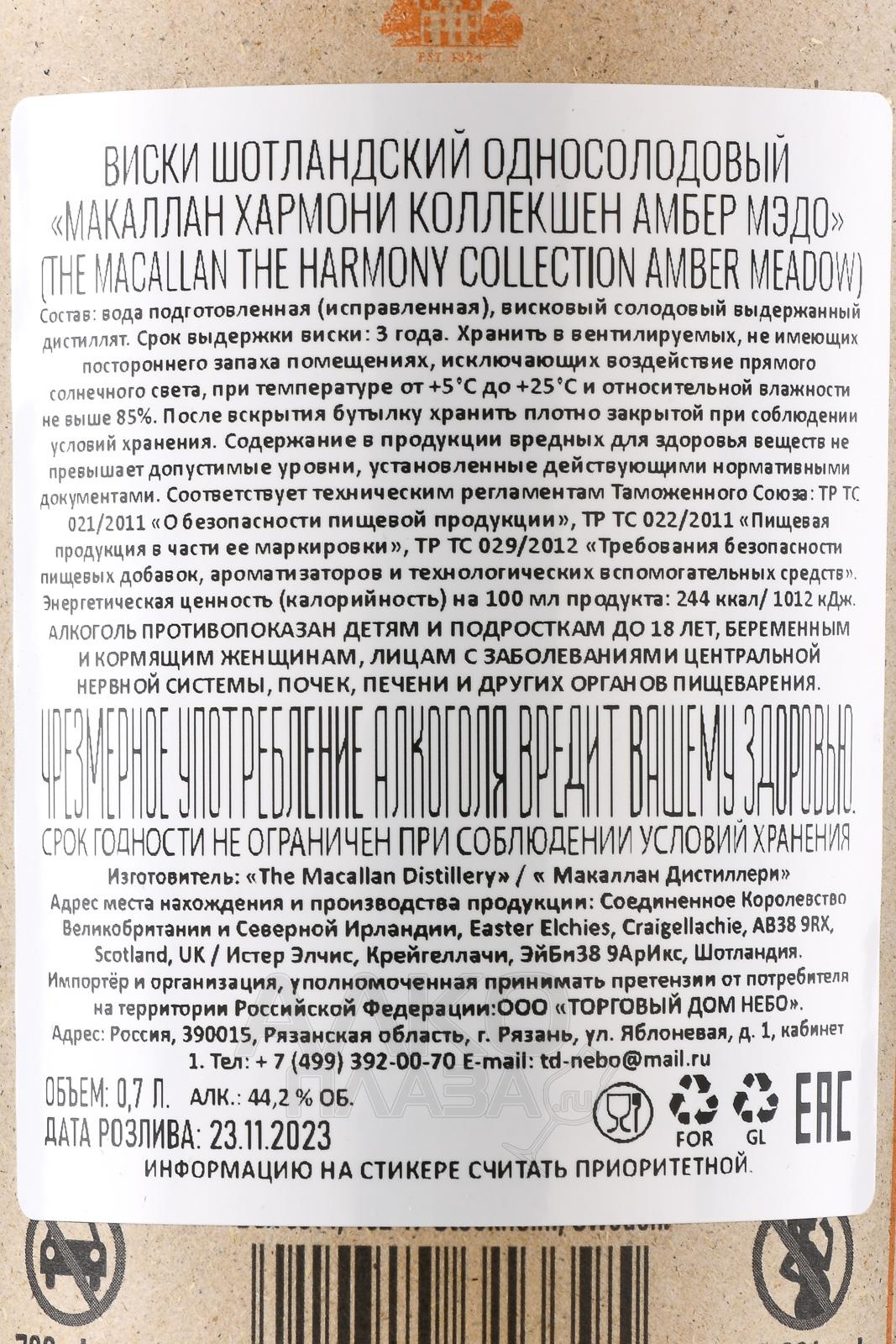Виски Macallan The Harmony Collection Amber Meadow 0,7 л в п/у создан на винокурне Спейсайда, одного из самых известных регионов Шотландии. Эта серия вдохновлена природой и подчёркивает связь бренда с экологией и устойчивыми практиками. Производитель известен строгим отбором ячменя и использованием чистой воды из источника на поместье Истер Элчи, что придаёт дистиллятам характерную чистоту и богатство. Коллекция Амбер Мэдо символизирует летний пейзаж с его теплом и спокойствием, а упаковка изготовлена из переработанных натуральных материалов, что подчёркивает философию уважения к природе.