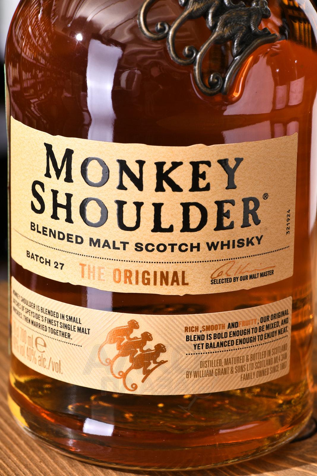 Monkey Shoulder вобрал в себя вкусовые оттенки ягод, мёда и ириса. Создатели виски объединили солода с трёх лучших заводов Speyside: Balvenie, Kininvie и Glenfiddich. Выдержка производится в американских бочках из-под бурбона. Бондари компании переделывают поступившие к ним бочки таким образом, чтобы вкусовые качества полученного виски становились всё мягче и нежнее.