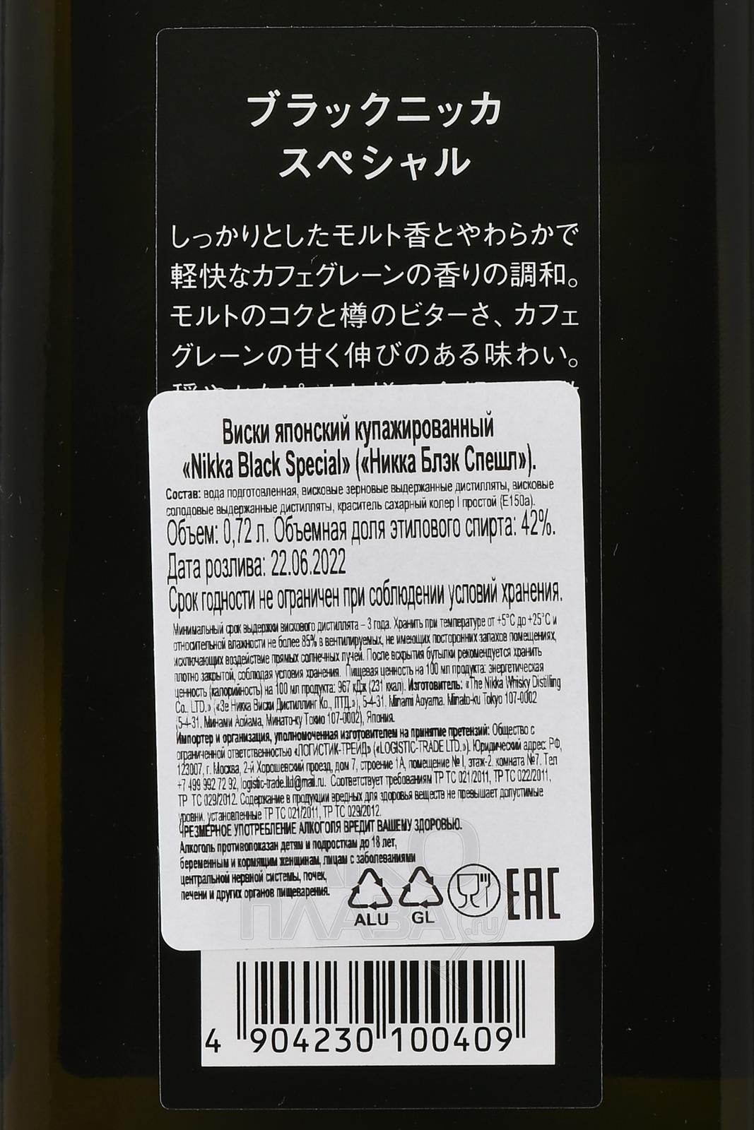 Виски Nikka Black Special 0,72 л является японским купажом из категории blended whisky. Он производится из солодовых и зерновых дистиллятов собственного изготовления. В основе напитка лежат спирты из ячменного солода и злаков, перегнанные в медных кубах различной формы, что позволяет формировать многослойный букет готового бленда. Выдержка проходит в дубовых бочках американского происхождения. Стиль ориентирован на насыщенность и округлость, с акцентом на мягкое сочетание сладких и пряных компонентов.