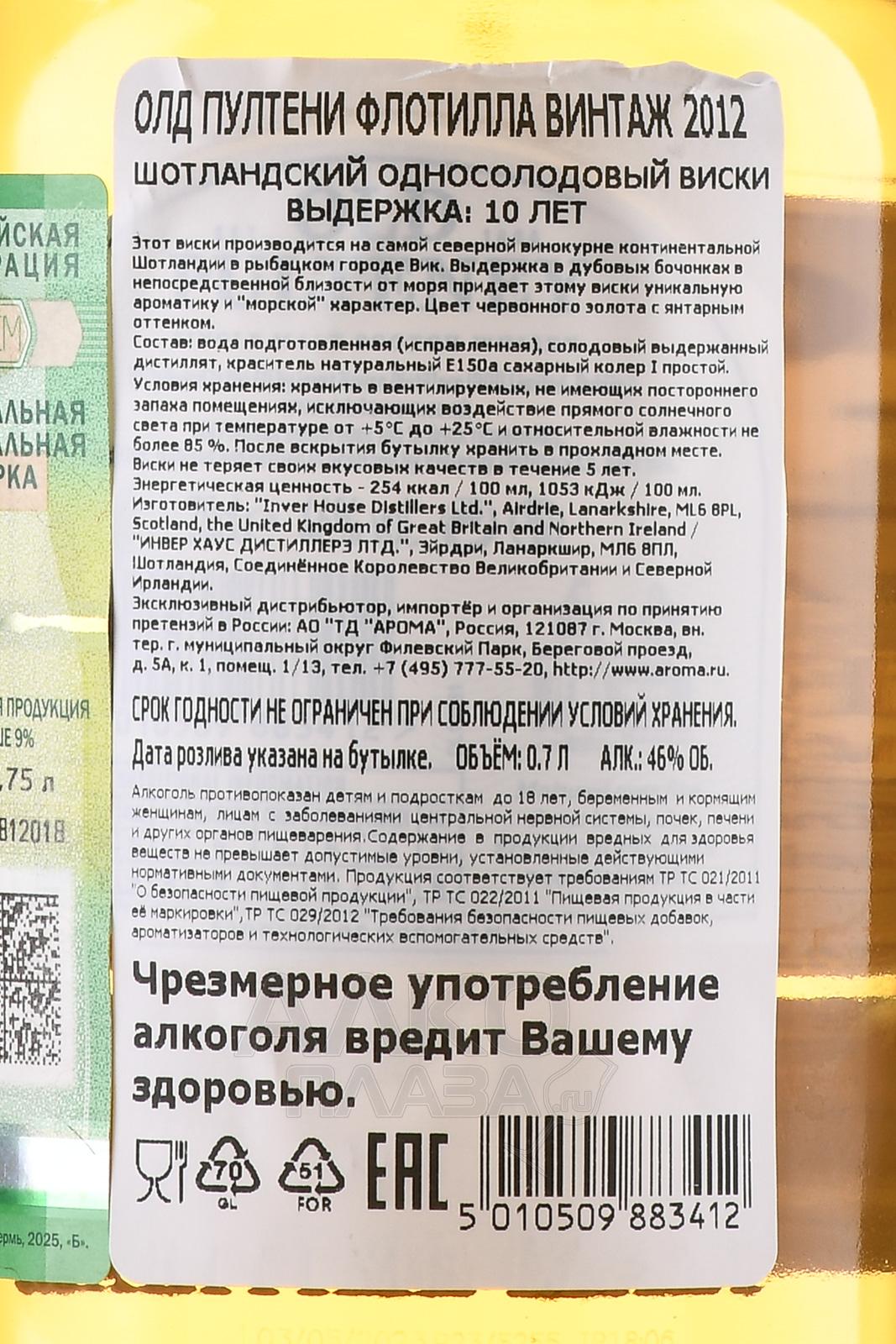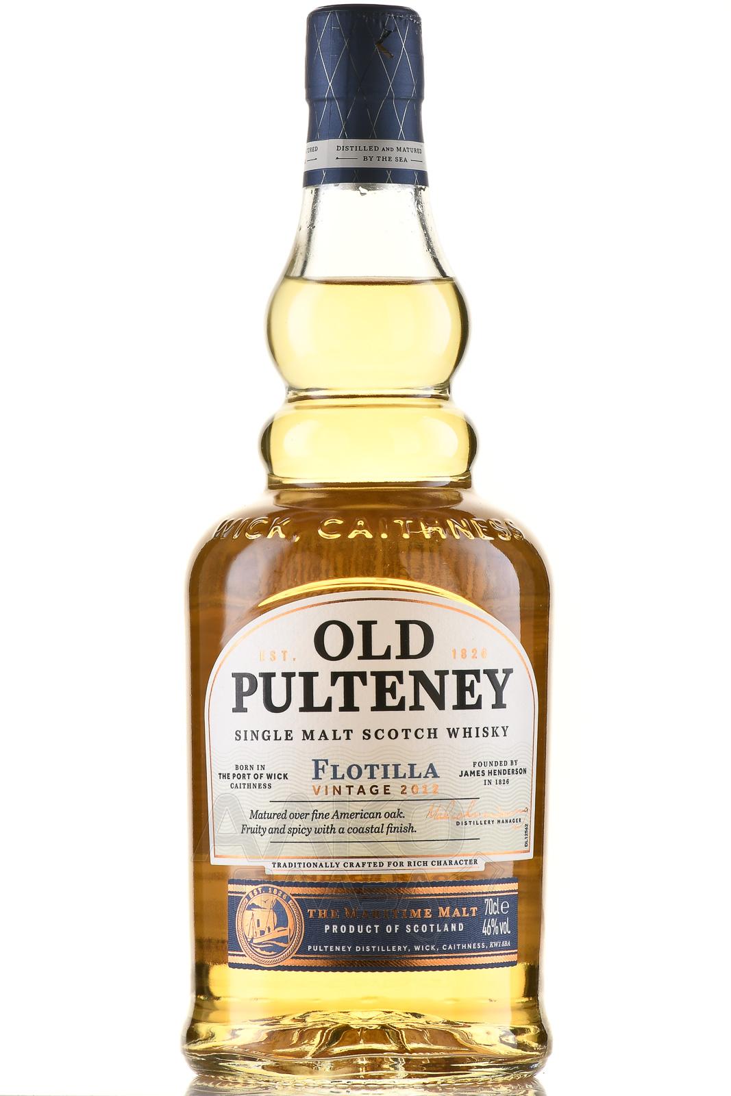 Виски Old Pulteney Flotilla 10 Years Old Vintage 2012 г. 0,7 л в п/у — это ограниченный релиз от дистиллерии, расположенной в самом северном порту Шотландии — Вике. Напиток олицетворяет морскую историю региона и традиции производства, которые бережно сохраняются с XIX века. Дистиллят был заложен в бочки в 2012 году и выдерживался на побережье Северного моря, где влажный морской воздух и соленые ветра формируют особый характер. Выдержка длиной в десять лет прошла в бочках из-под бурбона, что придало скотчу гармонию и сложность.