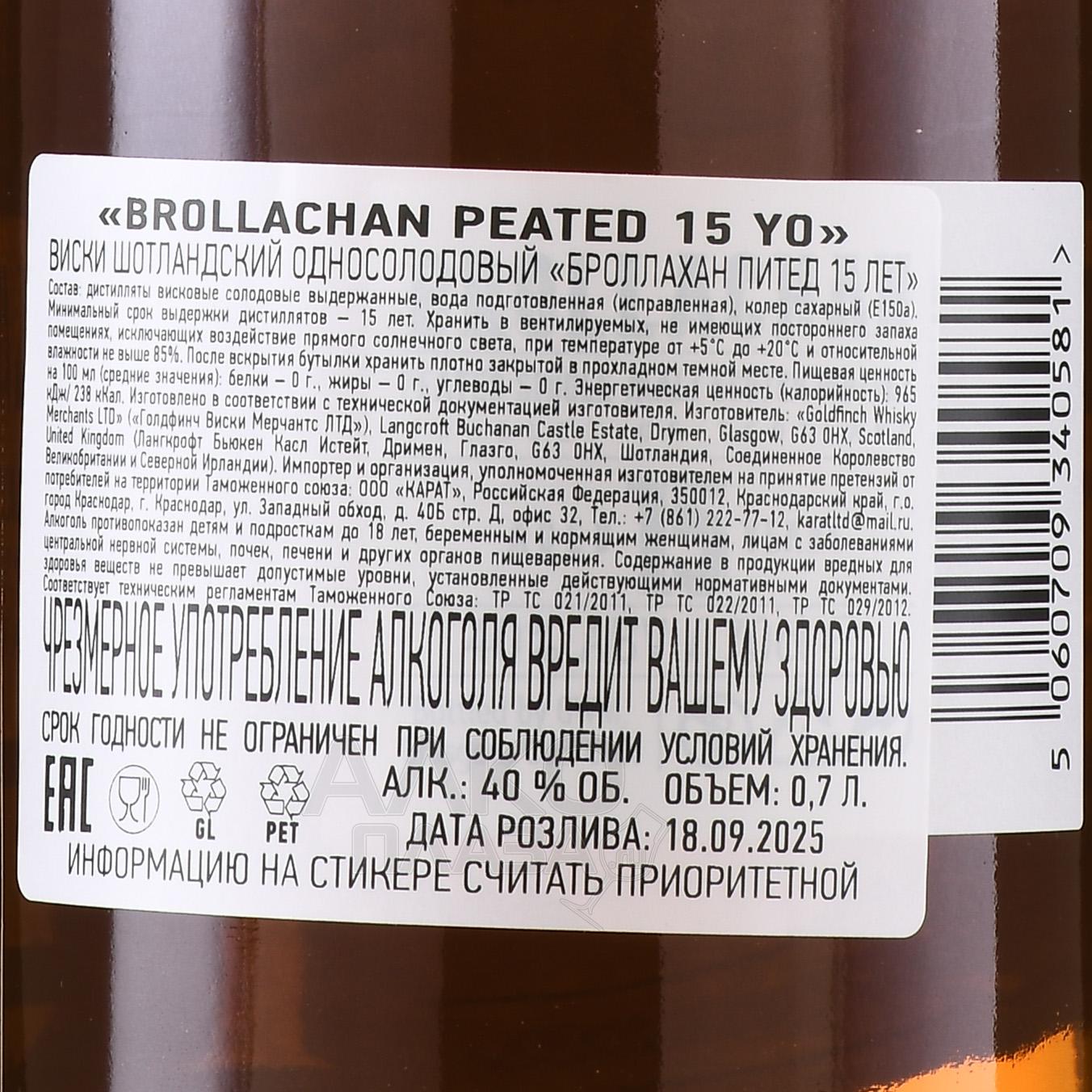 Brollachan Peated Aged 15 Years - виски Броллахан Питед 15 лет 0.7 л в тубе