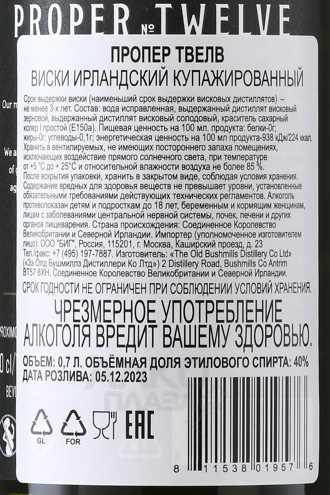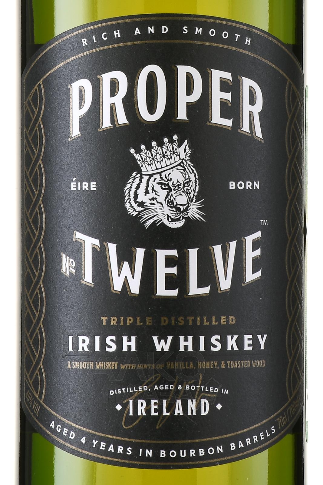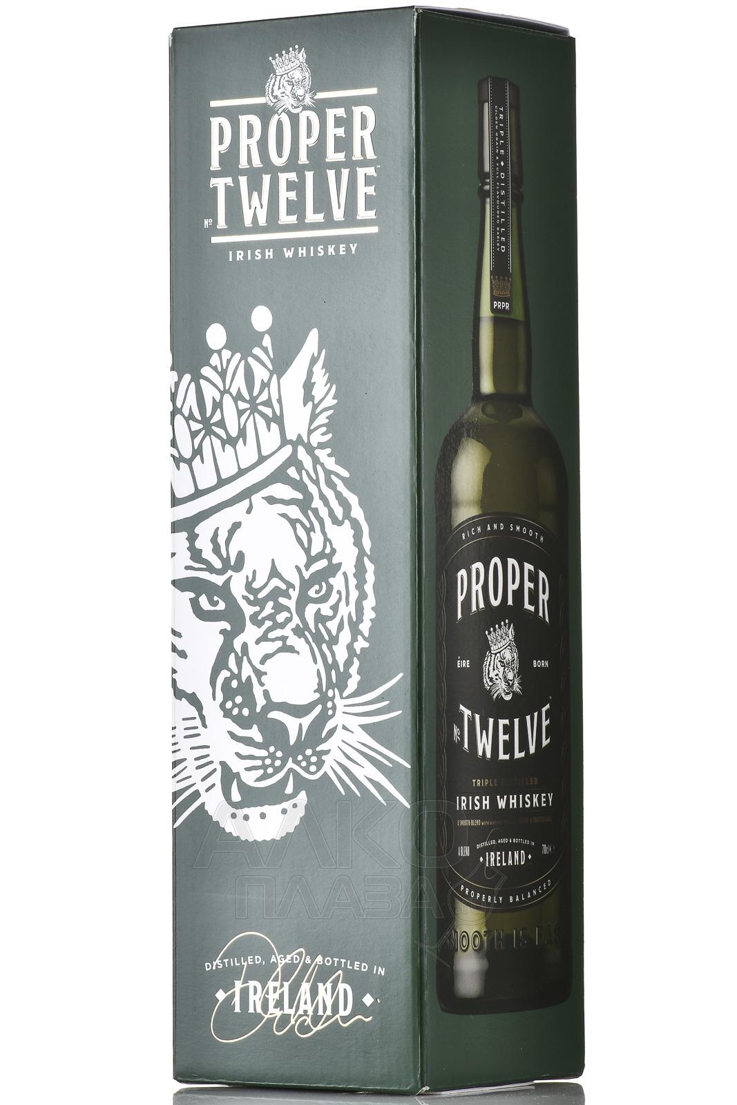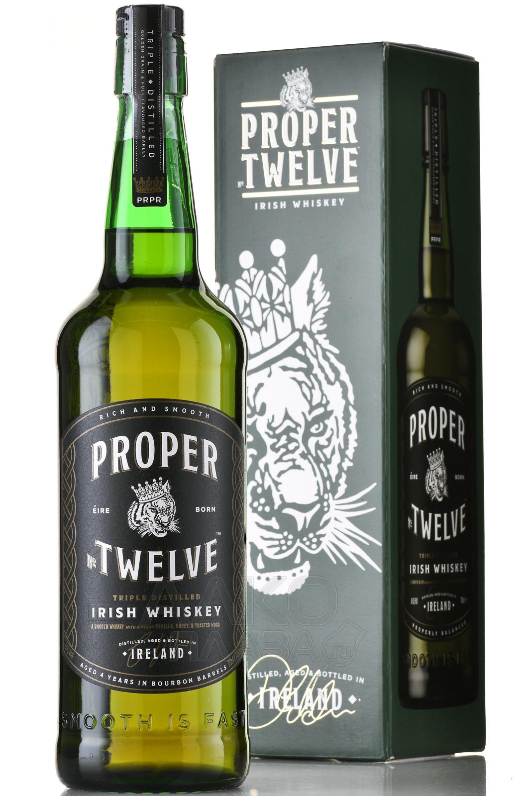 Виски Proper No. Twelve 0,7 л Gift Box — высококачественный алкоголь из Ирландии от известного боксера Конора Макгрегора. Напиток купажированного типа был изготовлен из зерновых и солодовых дистиллятов по классической технологии тройной перегонки и три года вызревал в барриках, где ранее находился бурбон. Продукт крепостью 40% поставляется в бутылке 700 мл, упакованной в подарочный черный картонный бокс.