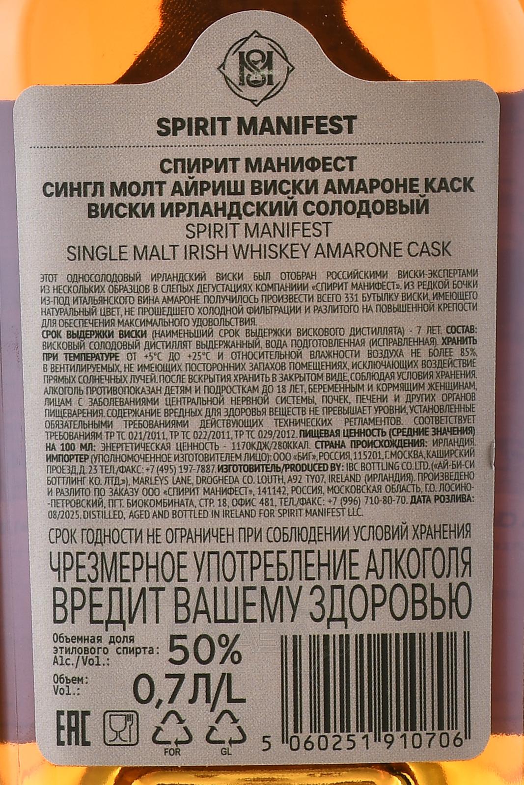 Spirit Manifest Amarone Cask 7 Years Old - виски Спирит Манифест Амароне Каск 7 лет 0.7 л в п/у