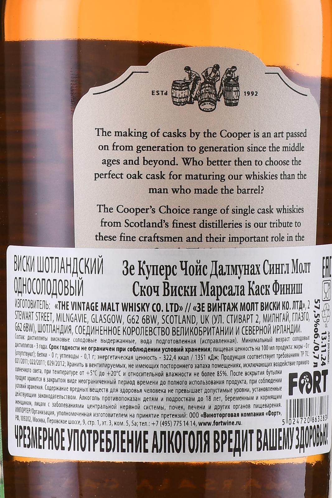 The Cooper’s Choice Dalmunach Marsala Cask Finish - виски Зе Куперс Чойс Далмунах Марсала Каск Финиш 0.7 л в п/у
