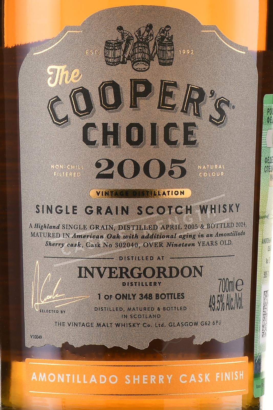 The Cooper’s Choice Invergordon Amontillado Sherry Cask Finish - виски Зе Куперс Чойс Инвергордон Амонтильядо Шерри Каск Финиш 0.7 л в п/у