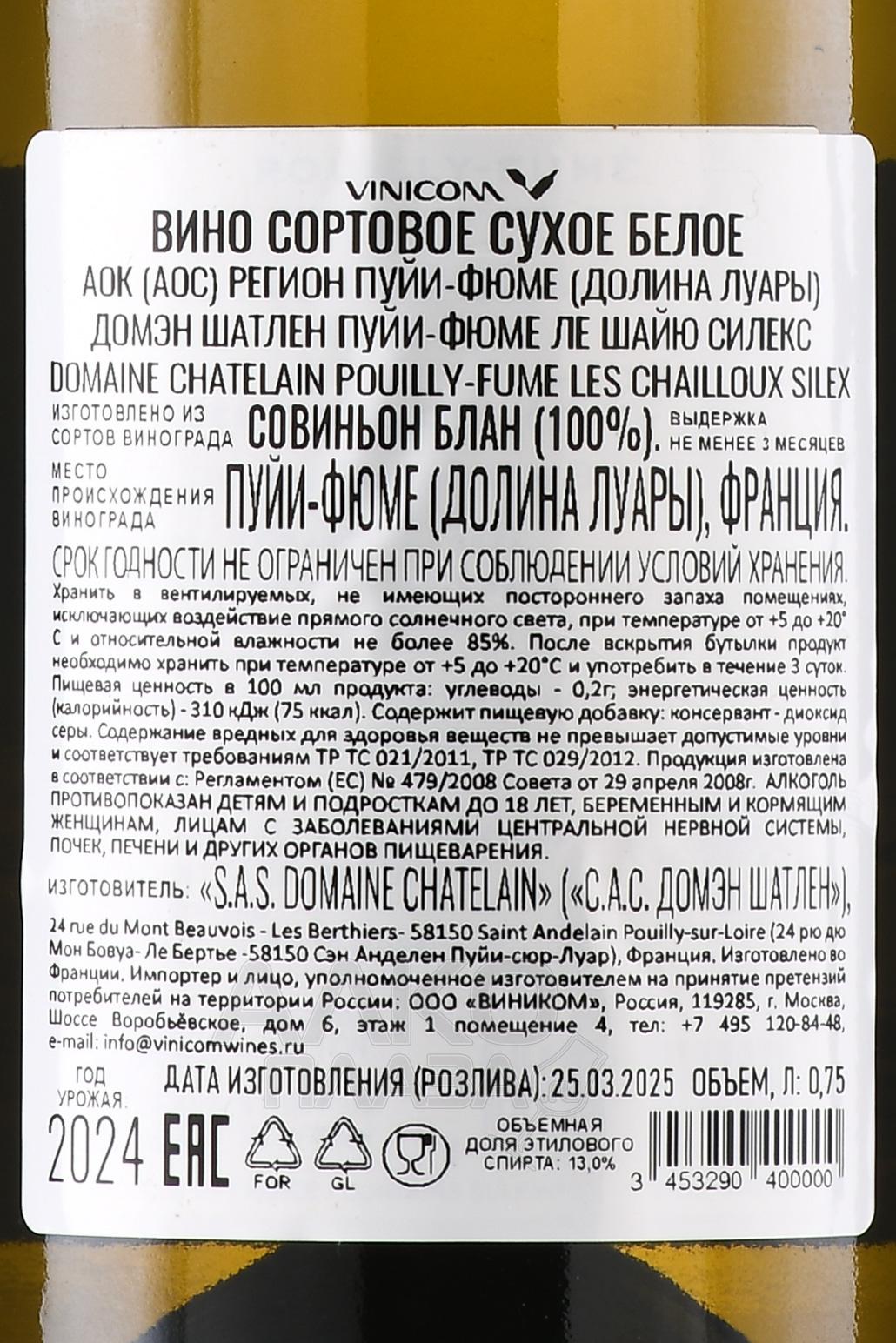 / Domaine Chatelain Сайт alcoplaza.ru содержит информацию, не рекомендованную для лиц, которые не достигли возраста 18 лет. Чтобы осуществить вход на сайт, Вам необходимо подтвердить свой совершеннолетний возраст. Сведения, размещенные на сайте , не являются рекламой, носят исключительно информационный характер, и предназначены только для личного использования. Информация на сайте не является публичной офертой.