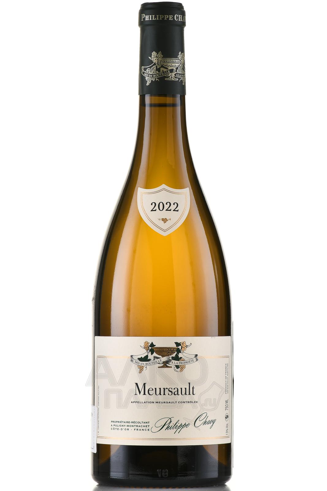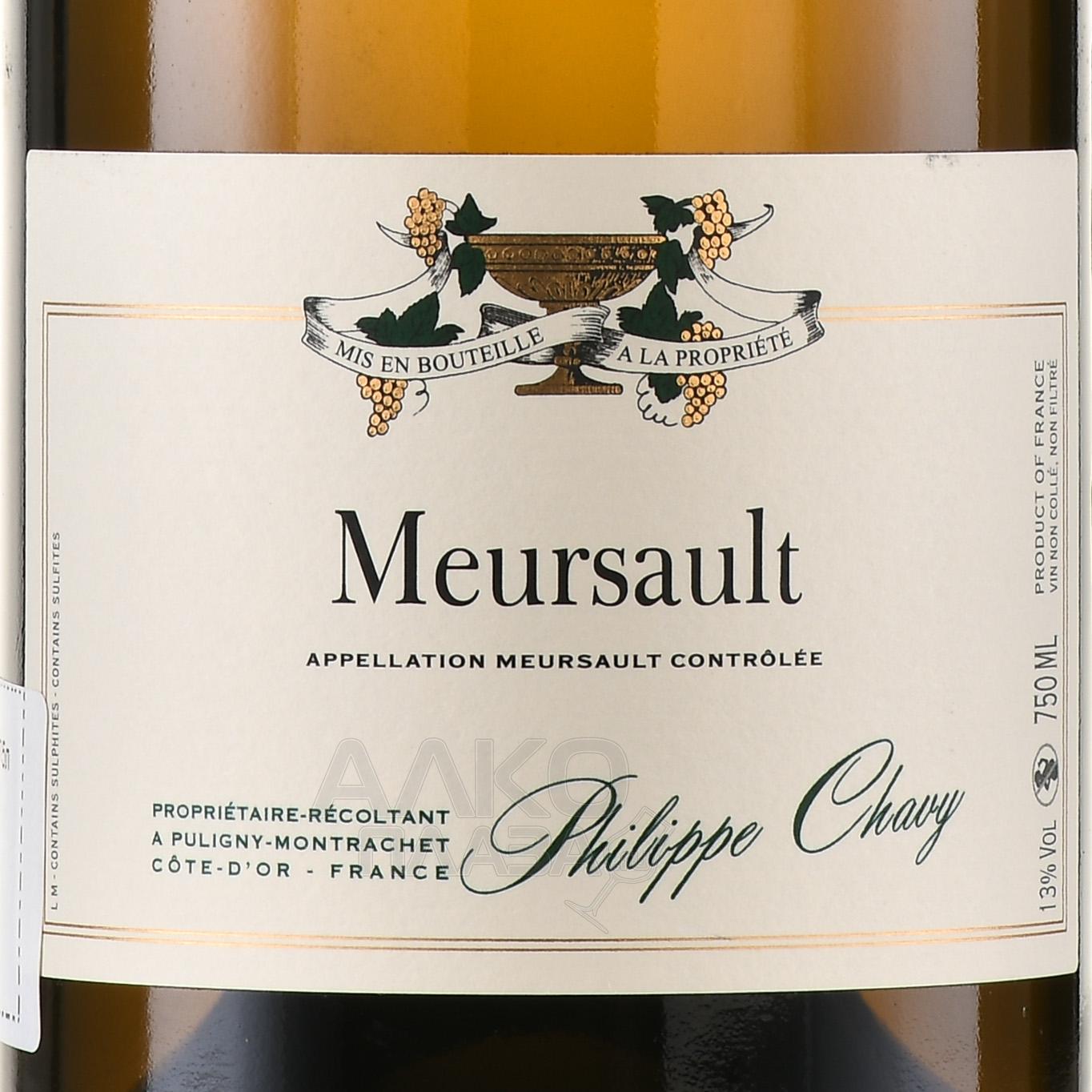 Philippe Chavy Meursault 0,75л — коммунальное белое сухое вино произведено из винограда, выращенного на участках, располагающихся вокруг деревни Мерсо. Урожай собран по достижении определённых кондиций зрелости ягод. Во время производства применялись классические технологии для создания белого вина. Винификация проведена в стальных емкостях. Бочковое созревание и выдержка на дрожжевом осадке длились 1,5 года.