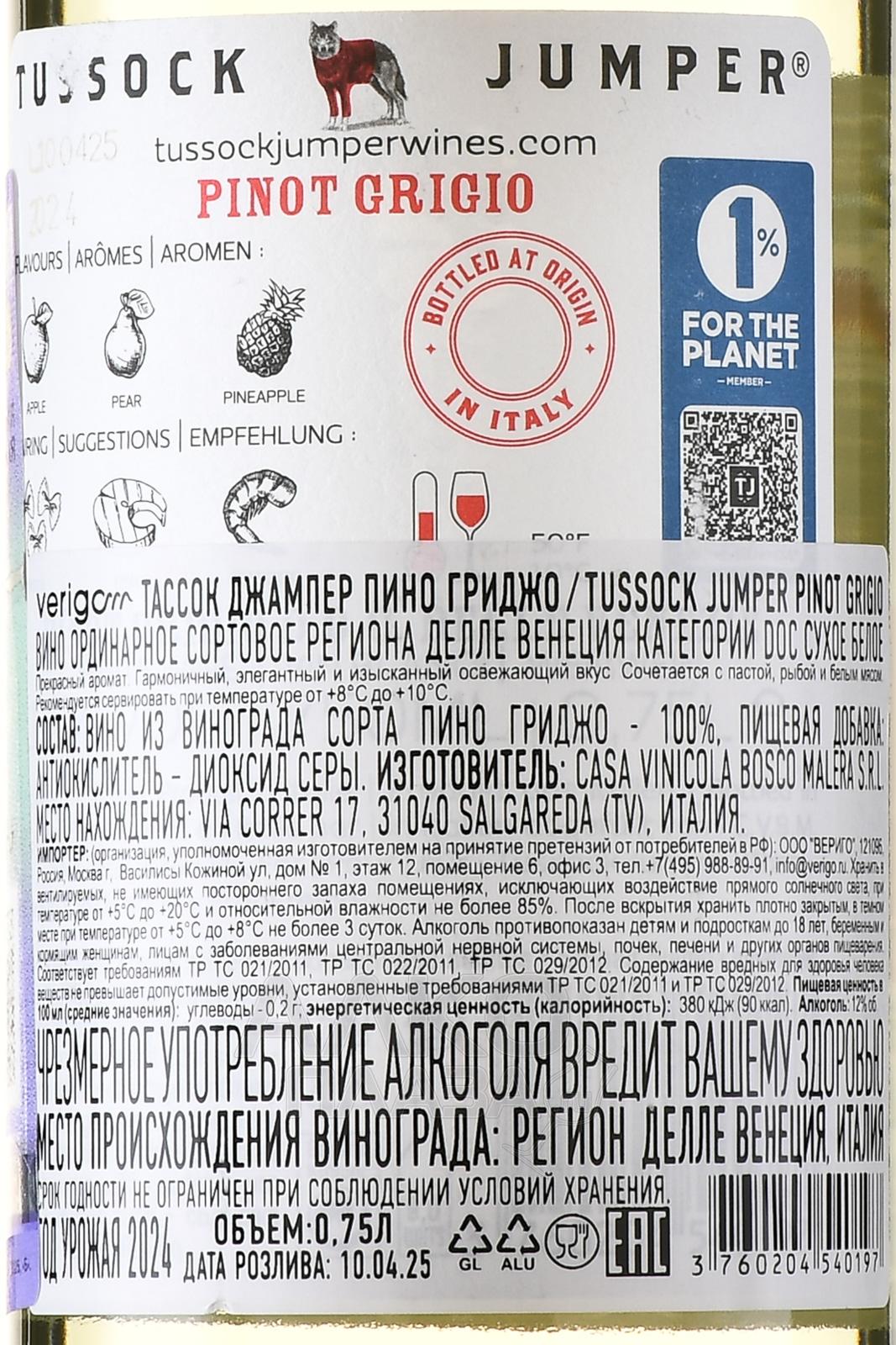 Tussock Jumper Pinot Grigio - вино Тассок Джампер Пино Гриджо 0.75 л белое сухое