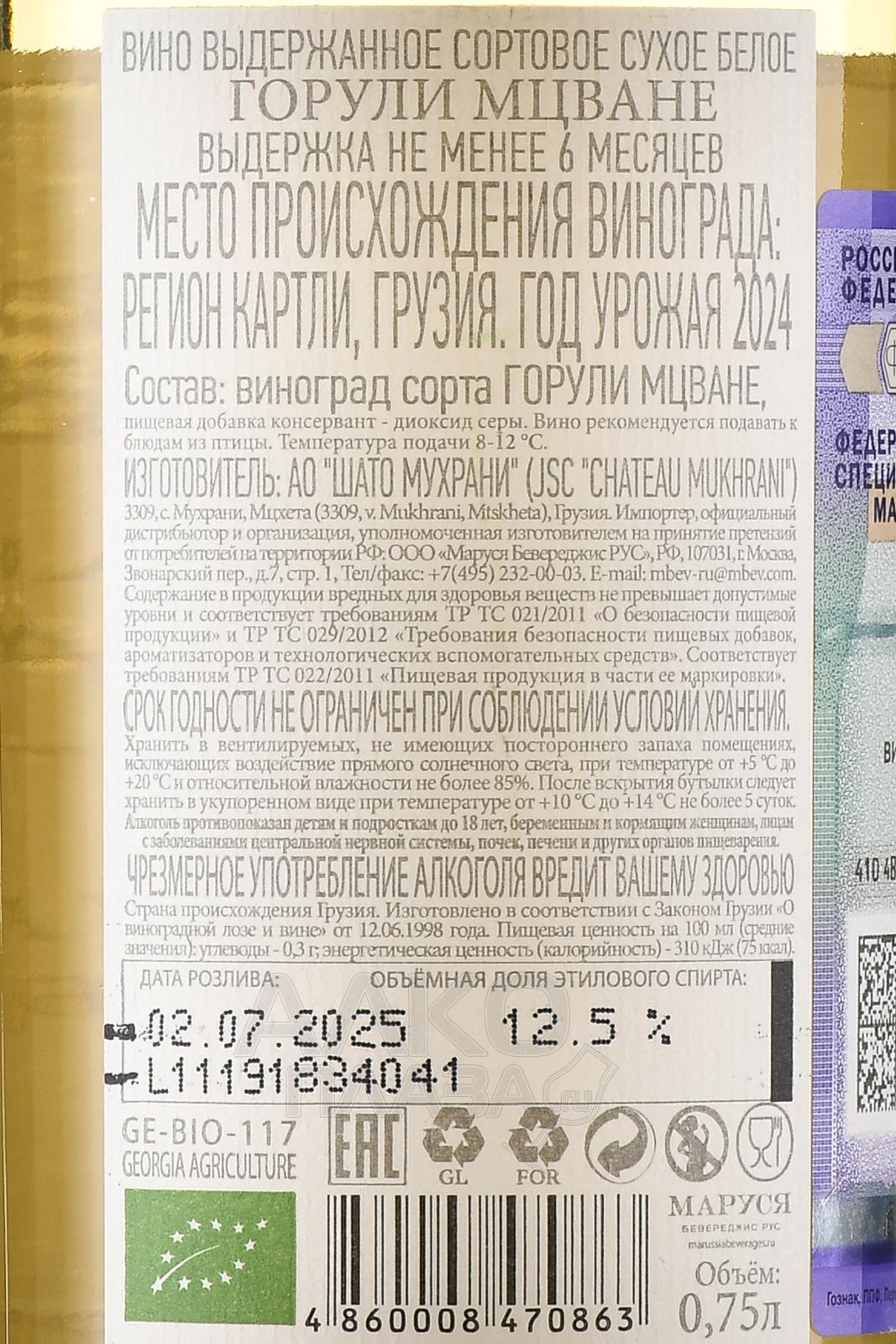 Моносортовое вино из редкого грузинского автохтонного винограда Горули Мцване.
