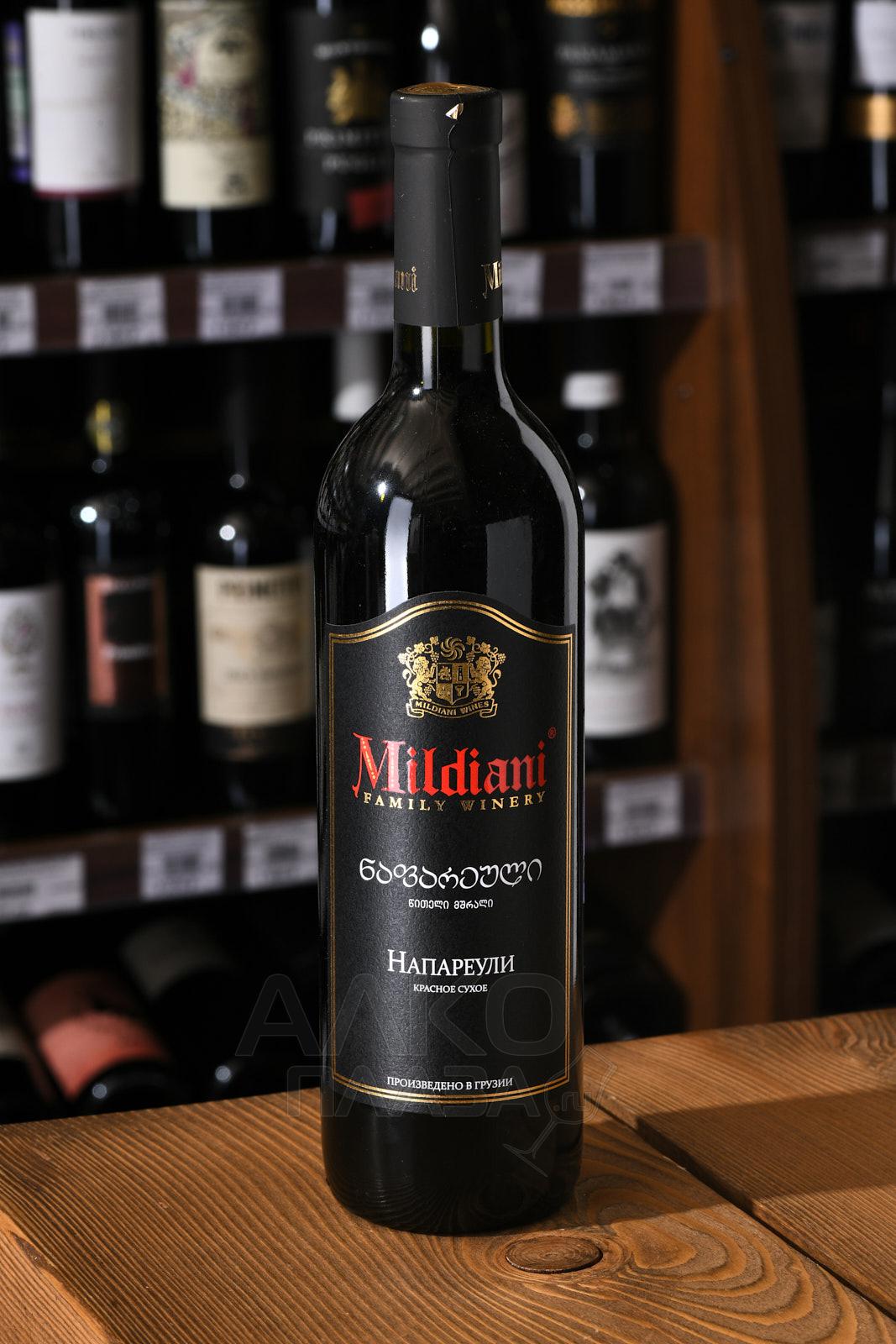 Красное сухое вино Mildiani Napareuli 0.75 л — моносепажный напиток, который изготавливают из аборигенного сорта винограда Саперави. Компания названа в честь основателей - двух братьев, именно их фамилия украшает этикетки и ассоциируется с исключительным качеством производимого напитка. Благодаря использованию в своей промышленности сочетания исконных грузинских традиций винификации в тандеме с инновационными итальянскими технологиями, вино покоряет своим самобытным вкусоароматом с первых секунд, его разливают по бутылкам при крепости 12% .