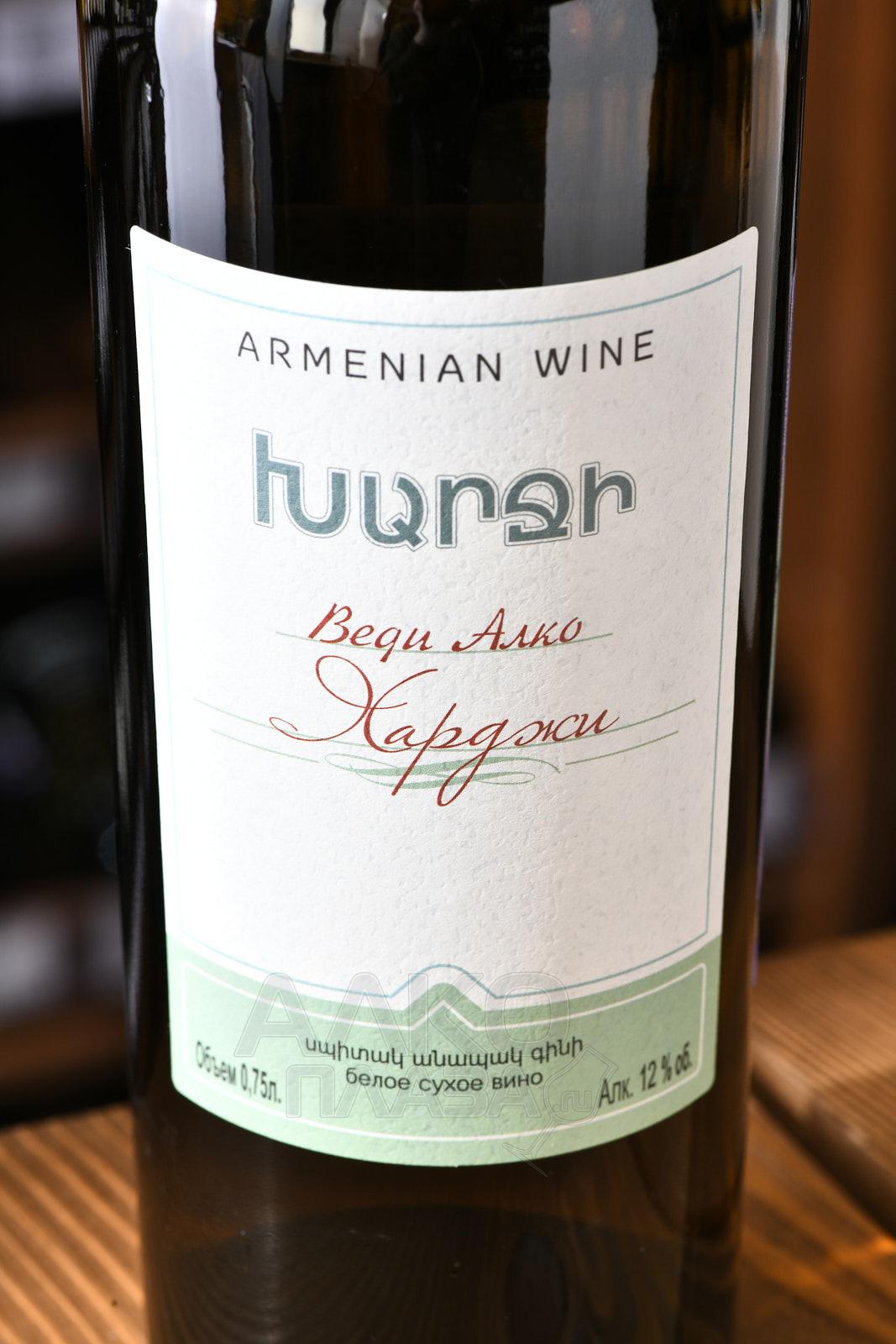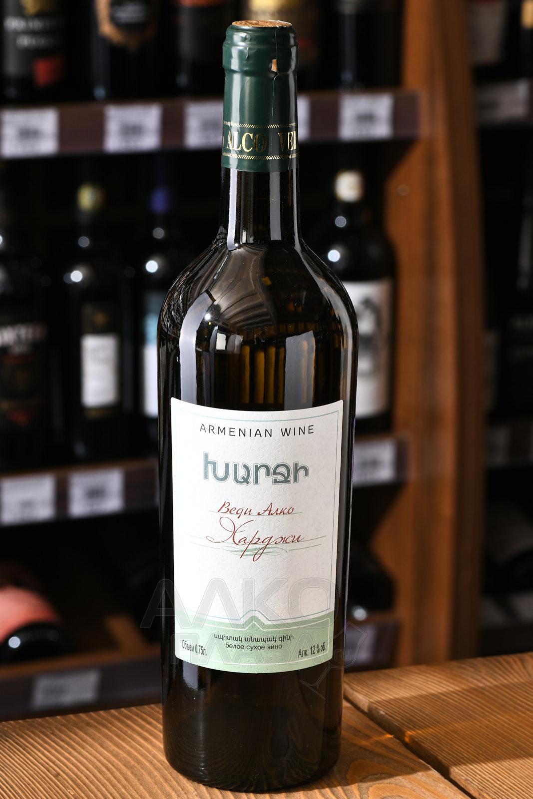 Белое сухое вино Веди Алко Харджи 0,75 л — продукт известной армянской винодельни, который предлагается по доступной цене и потому является выбором номер один для многих людей, предпочитающих наслаждаться им в будни и по особым поводам. Состав напитка сформирован редким автохтоном — сортом Воскеат, произрастающим лишь в нескольких частях Армении. Данная вариация содержит ягоды, собранные близ горы Арарат, которые обладают яркой фруктовой вкусоароматикой. Их обработка осуществилась методом сбраживания, затем алкоголь около года выдерживался в бочках, а потом и в стеклянных бутылках.