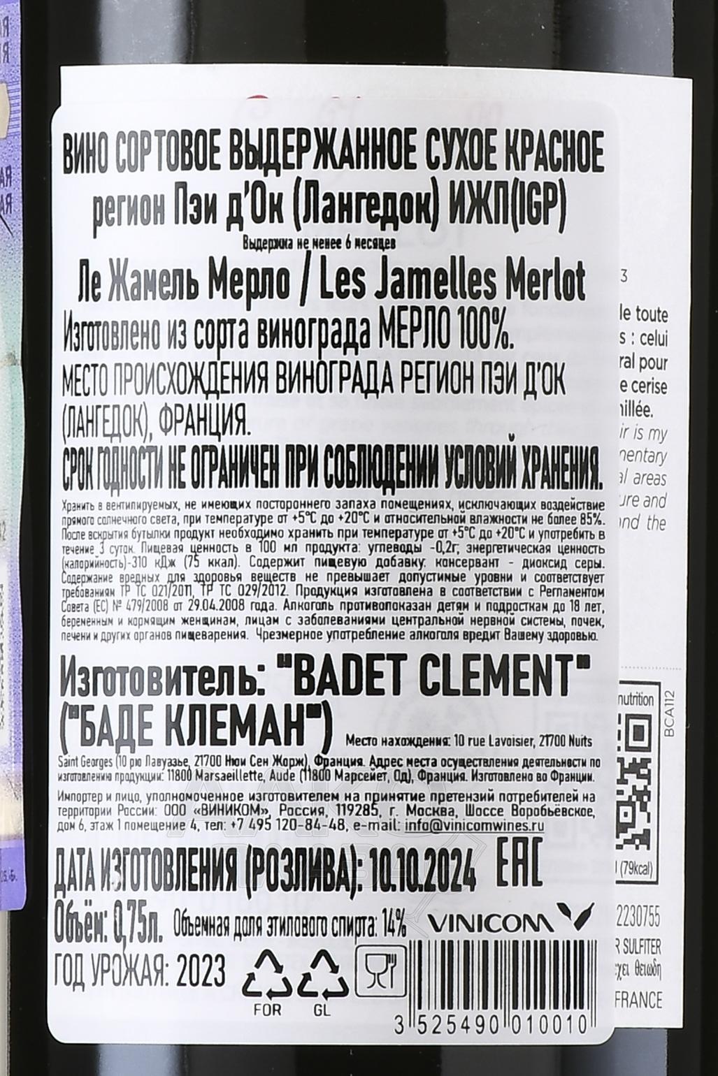 Les Jamelles Merlot - вино Ле Жамель Мерло 0.75 л красное сухое