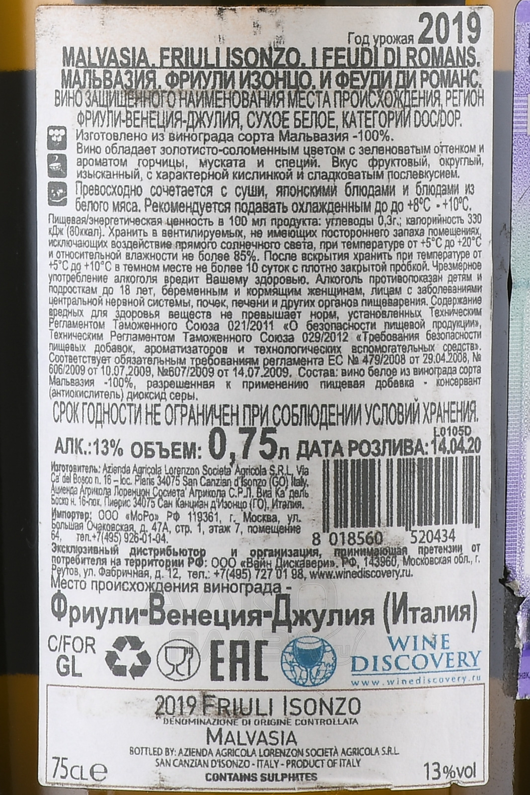 I Feudi di Romans Venezia Giulia Malvasia Istriana - вино И Феуди ди Романс Венеция Джулия Мальвазия Истриана 0.75 л белое сухое