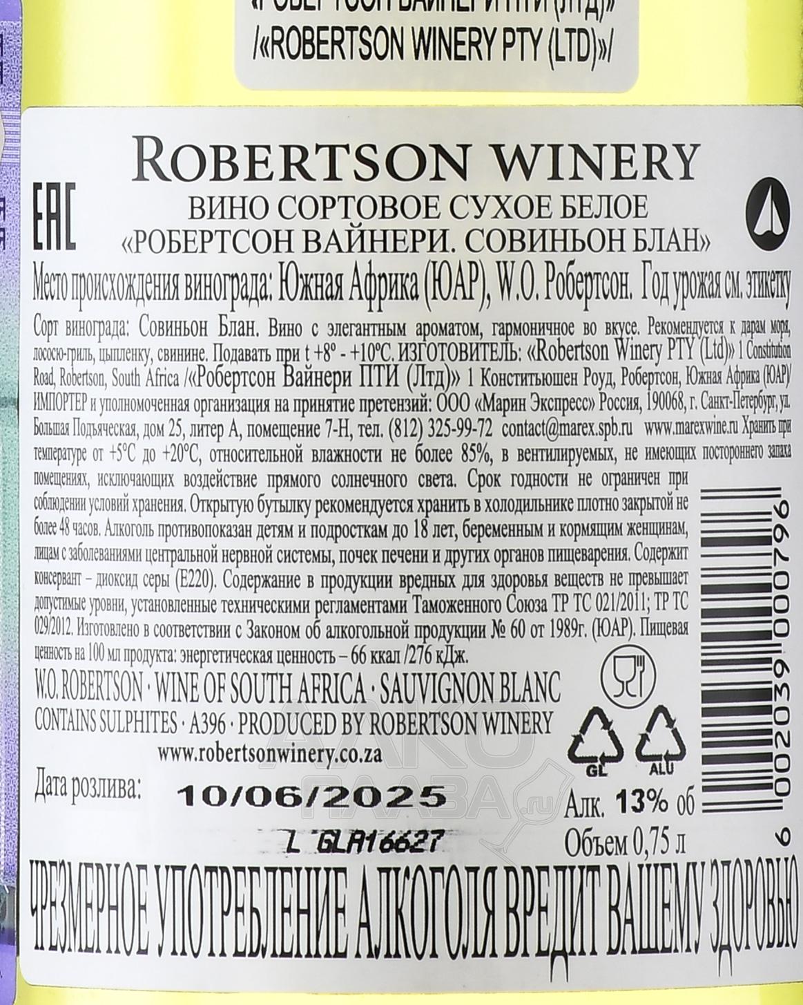 / Robertson Winery Сайт alcoplaza.ru содержит информацию, не рекомендованную для лиц, которые не достигли возраста 18 лет. Чтобы осуществить вход на сайт, Вам необходимо подтвердить свой совершеннолетний возраст. Сведения, размещенные на сайте , не являются рекламой, носят исключительно информационный характер, и предназначены только для личного использования. Информация на сайте не является публичной офертой.