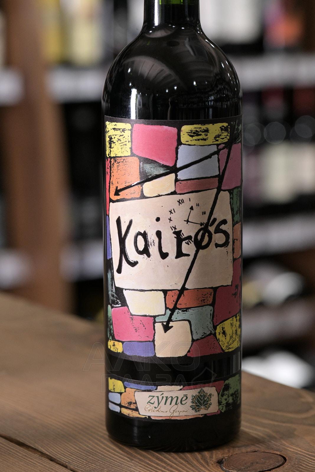 Красное сухое вино Zyme Kairos 0,75 л выделяется яркой разноцветной этикеткой с геометрическим узором. Бутылка оформлена под стать содержанию – внутри нее сложный купаж из 15 сортов винограда (11 красных и 4 белых). Ягоды собирают при оптимальной спелости на собственных виноградниках компании в регионе Венето – из-за разных сроков созревания сбор может длиться до 40 дней. В течение 20-25 дней сусло ферментируется вместе с кожицей в бетонных и стальных чанах. Затем следует выдержка во французских дубовых бочках на протяжении 24 месяцев. Еще минимум один год вино отдыхает в бутылках.