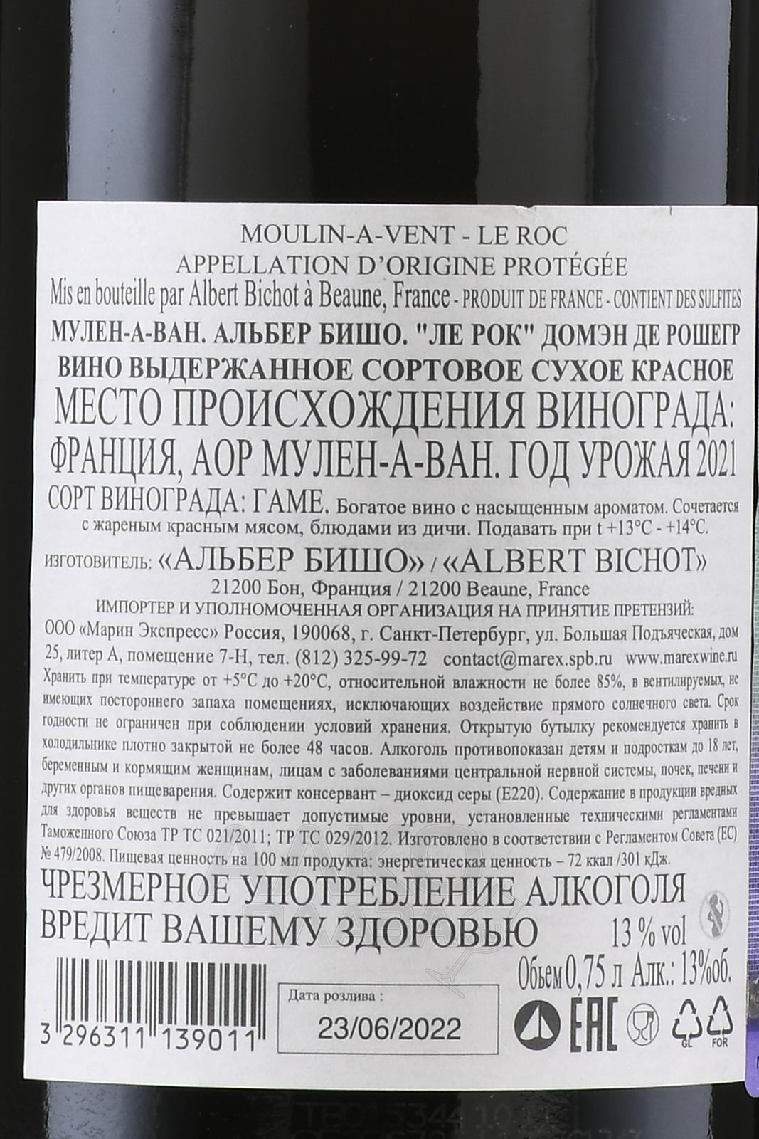 Albert Bichot Moulin-a-Van Rochegres - вино Альбер Бишо Мулен-а-Ван Рошегр 0.75 л красное сухое