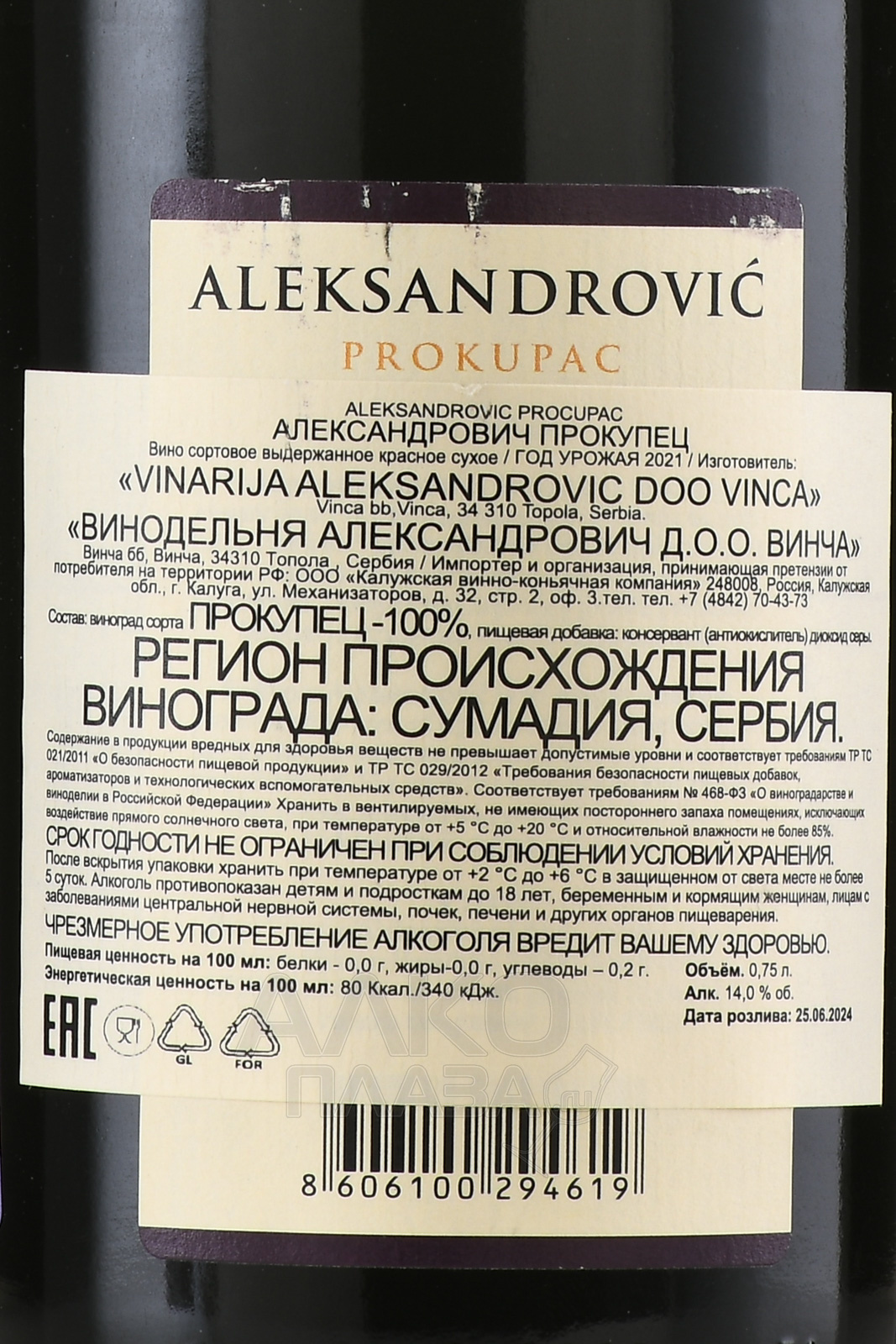 / Aleksandrovic Сайт alcoplaza.ru содержит информацию, не рекомендованную для лиц, которые не достигли возраста 18 лет. Чтобы осуществить вход на сайт, Вам необходимо подтвердить свой совершеннолетний возраст. Сведения, размещенные на сайте , не являются рекламой, носят исключительно информационный характер, и предназначены только для личного использования. Информация на сайте не является публичной офертой.