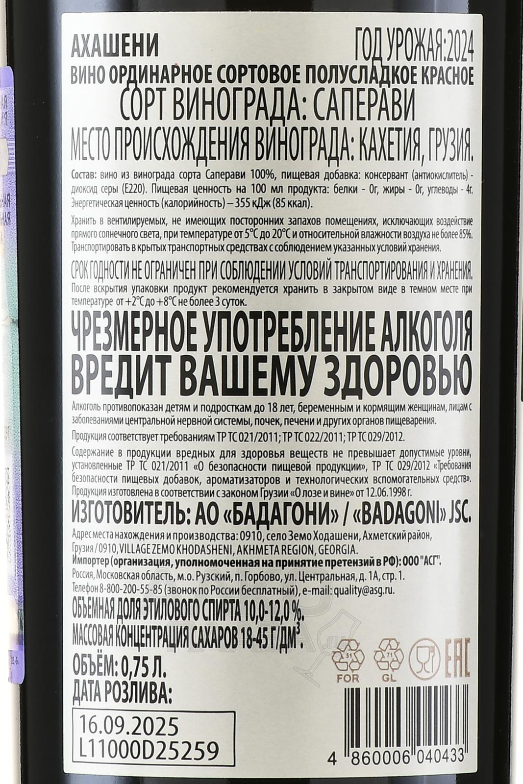 Badagoni Akhasheni - вино Бадагони Ахашени 0.75 л красное полусладкое