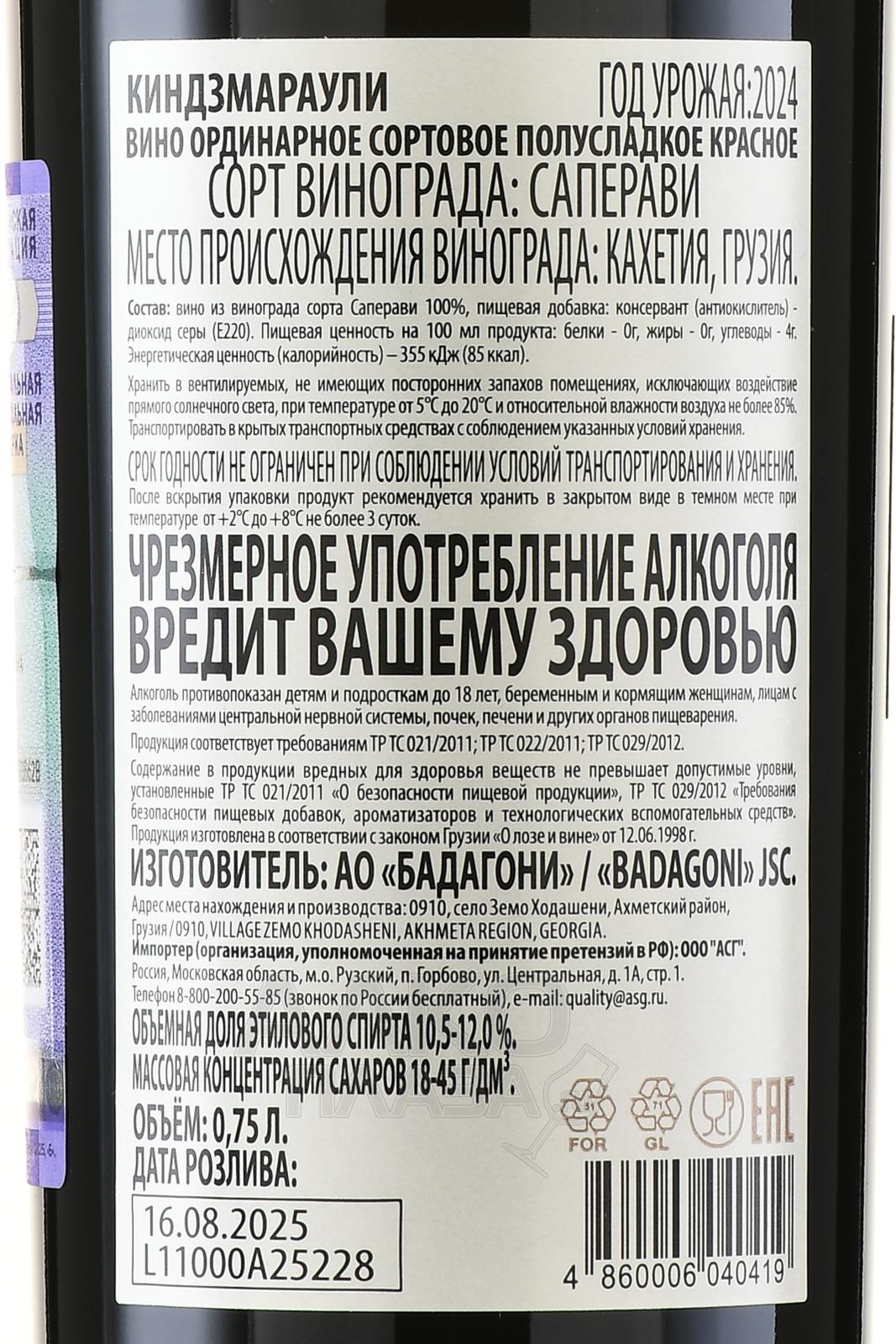 Badagoni Kindzmarauli - вино Бадагони Киндзмараули 0.75 л красное полусладкое