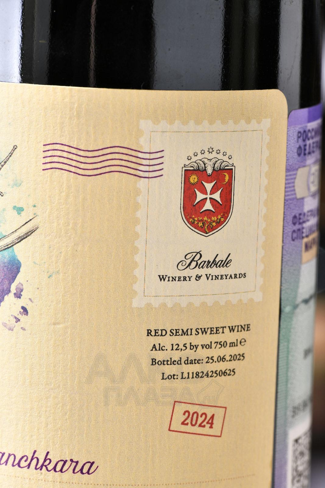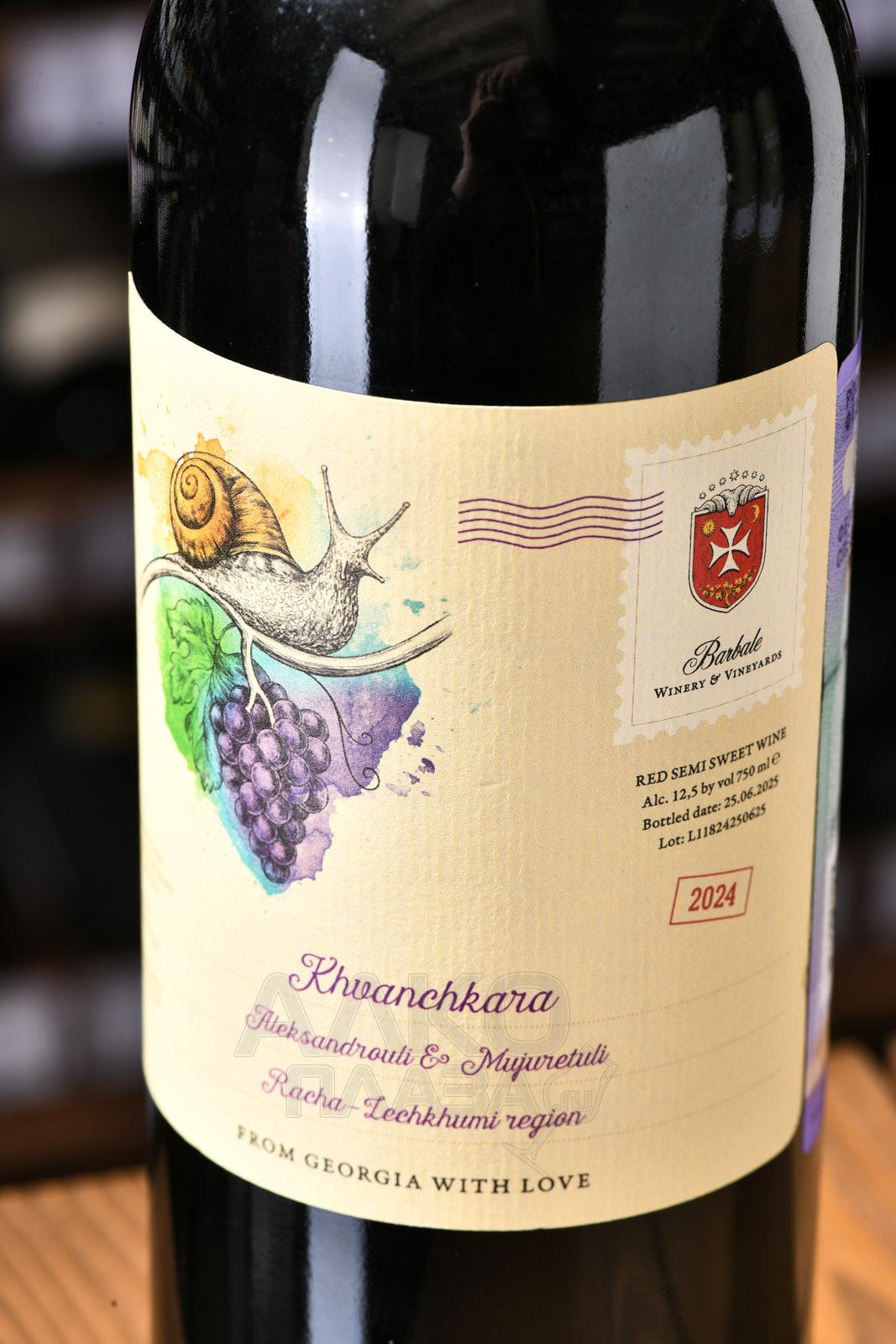 Красное полусладкое вино Barbale Khvanchkara 0,75 л — одна из самых популярных грузинских вариаций, которая отличается природной высокой сладостью (до 45 г/л). По традиции это спиртное производят из двух аборигенных видов винограда, выращенных в определенной местности — регионе Рача-Лечхуми, близ с. Хванчкара. Для получения напитка сусло ферментируют на мезге при контролируемой температуре, не превышающей 28-32 градусов Цельсия, пока сладость не достигнет требуемого уровня.