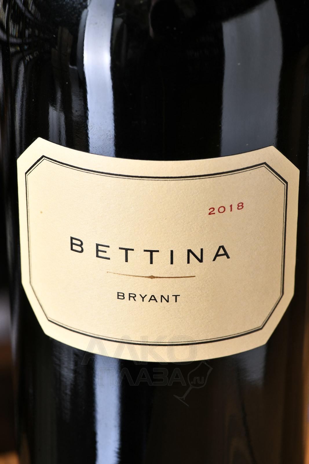 Bettina - топовое вино винного хозяйства Bryant Estate произведенное методом купажирования классических бордосских сортов. Виноград выращен и собран в штате Калифорнии, в регионе Долина Напы на виноградниках: Abreu’s Thorevilos (Абреу Торевилос), Madrona (Мадрона), Las Posadas (Лас Посадас). Ягоды с разных участков ферментируются в стальных емкостях по отдельности с контролем за температурой. Выдержка вина длительностью 1 год проводилась в бочках произведенных из французского дуба, 2/3 из них новые. Потенциал урожая 2018 года по мнению винных критиков рассчитан до 2045 года.