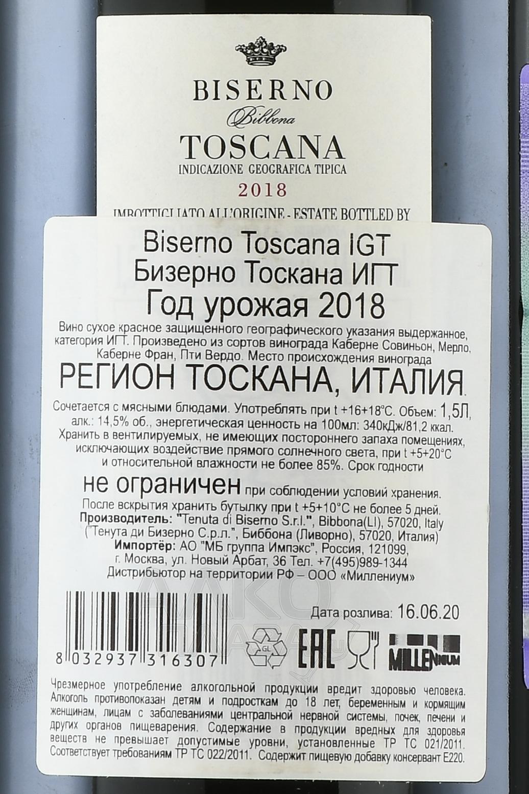 Biserno Toscana - вино Бизерно Тоскана 0.75 л красное сухое