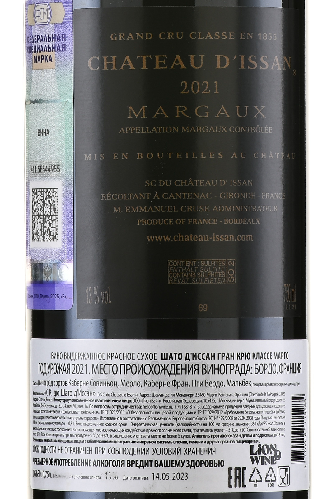 Chateau d’Issan Grand Cru Classe Margaux- вино Шато д’Иссан Гран Крю Классе Марго 2021 год 0.75 л красное сухое