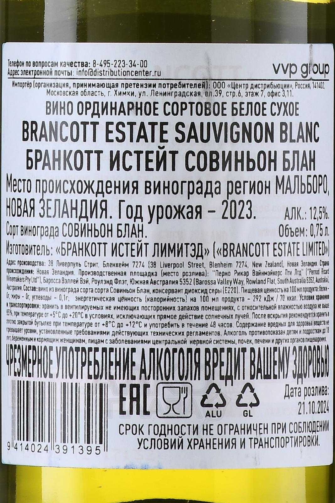 Brancott Estate Marlborough Sauvignon Blanc - вино Совиньон Блан Бранкотт Истейт Мальборо 0.75 л белое сухое