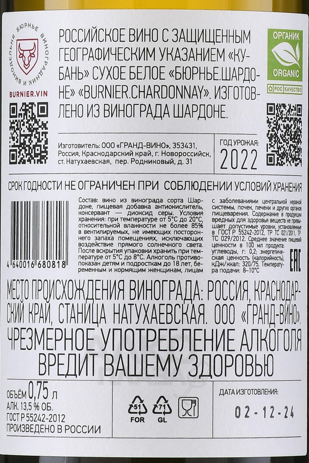 Вино Бюрнье Шардоне