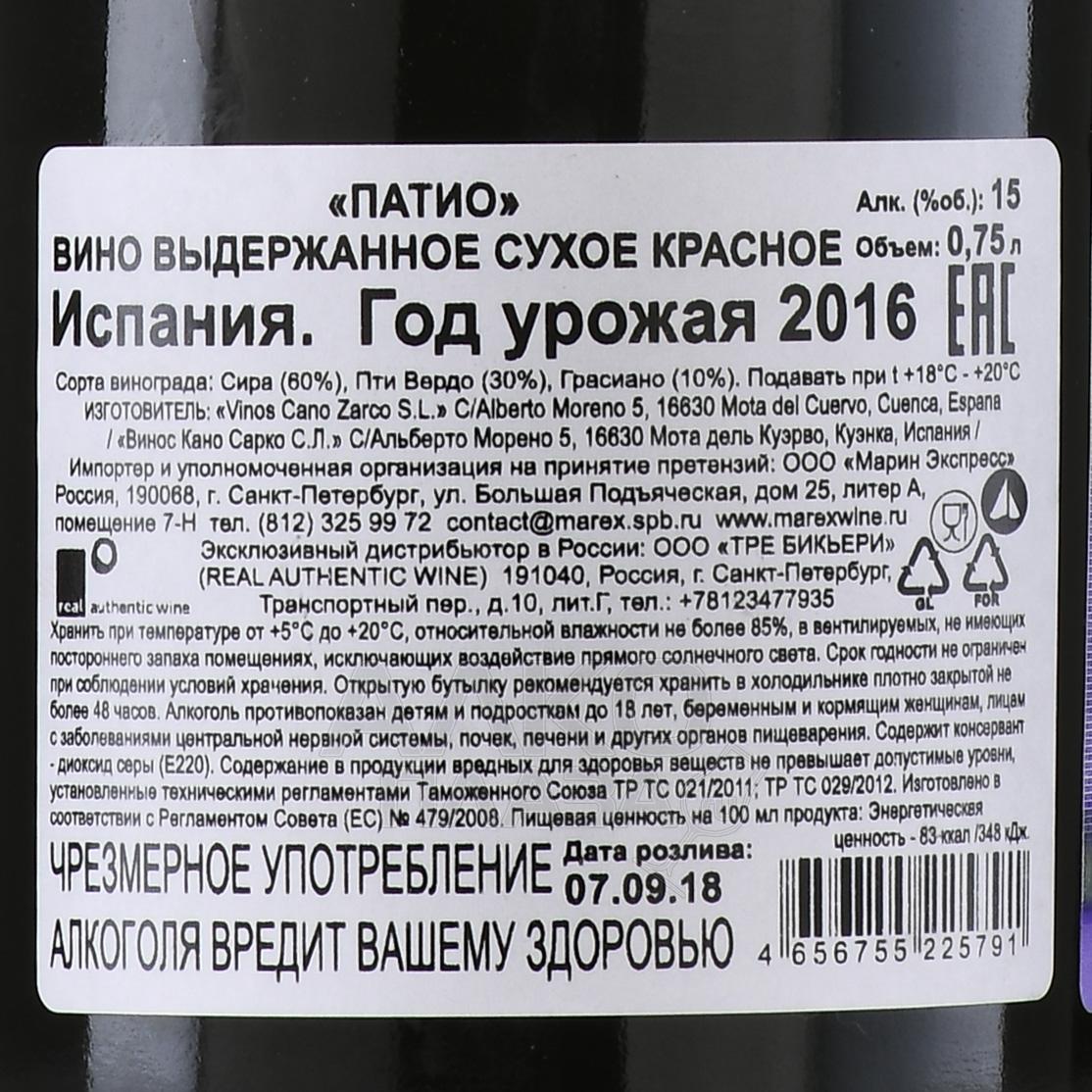 Красное сухое вино Cano Zarco Patio 0,75 л производится в центральной Испании, в провинции Куэнка, где виноградники расположены на высоте 700 метров над уровнем моря. Местный терруар характеризуется континентальным климатом с жарким летом и прохладными ночами, что позволяет ягодам сохранять кислотность и ароматическую насыщенность. Почвы — известково-глинистые, бедные органикой, но богатые минералами, придают напитку плотность и выразительность. Урожай собирают вручную, брожение проходит на диких дрожжах без фильтрации и применения дубовых емкостей, чтобы максимально сохранить природный характер сорта. Название Патио символизирует открытость и домашнее тепло — купаж создан для дружеских встреч и неспешных разговоров, с акцентом на чистоту, свежесть и душевный баланс.