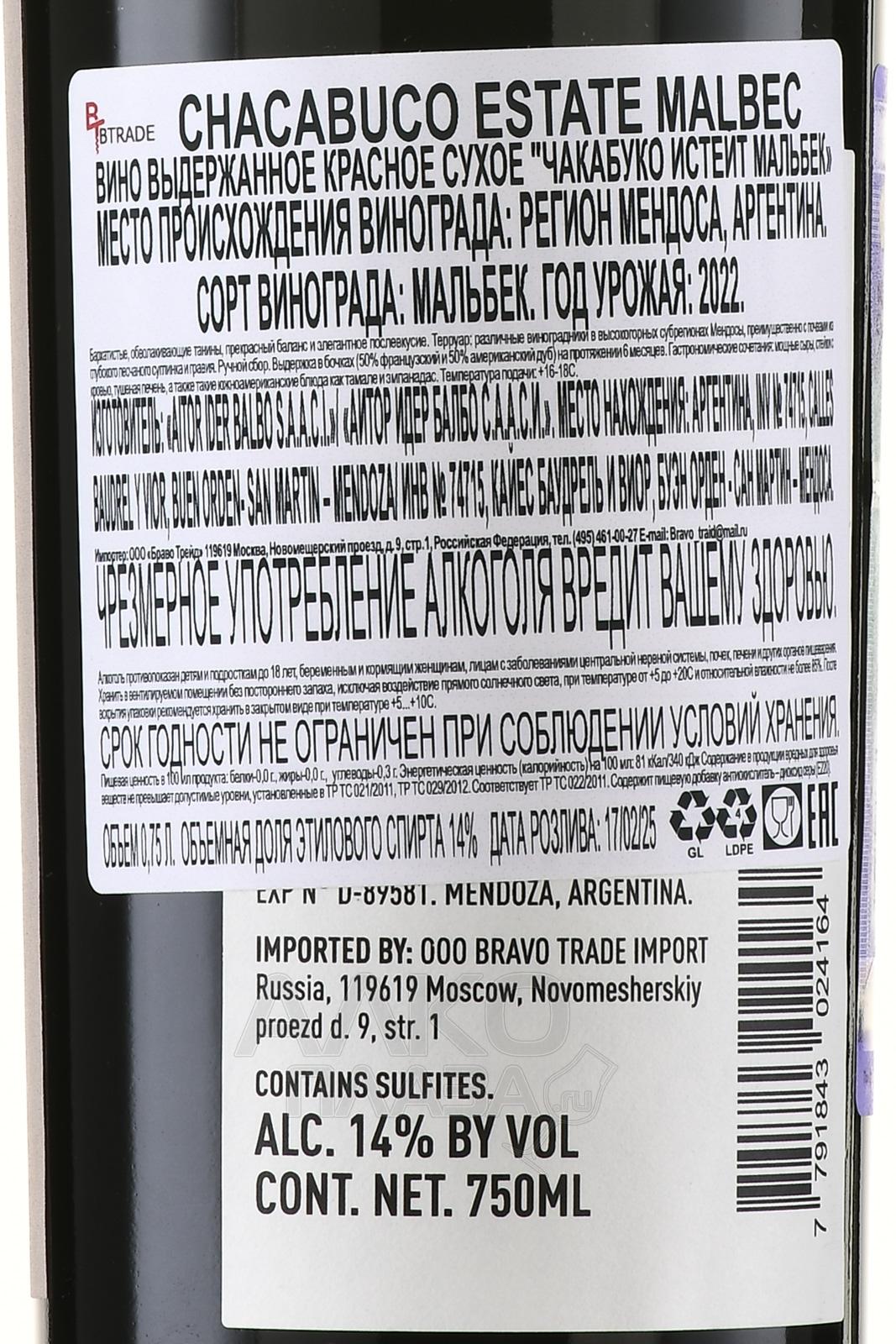 Красное сухое вино Chacabuco Estate Malbec 0,75 л создается в сердце аргентинской Мендосы — регионе, который считается главным центром виноделия страны. Виноградники расположены на высоте около 900–1100 метров над уровнем моря у подножия Анд, где перепады дневных и ночных температур обеспечивают ягодам равномерное созревание и сохранение свежести. Почвы здесь преимущественно каменисто-глинистые с высоким содержанием минералов, что придает вину особую структуру. Климат в год сбора урожая был теплым и сухим, с редкими осадками и продолжительным солнечным периодом, что позволило собрать грозди оптимальной зрелости с выраженной концентрацией. Виноделы хозяйства Чакабуко используют традиционный метод ферментации в стальных емкостях, а затем выдерживают вино в бочках из французского и американского дуба, чтобы подчеркнуть природный характер сорта. Это делает напиток аутентичным представителем аргентинского стиля Malbec, в котором яркий характер сочетается с гармонией и глубиной.