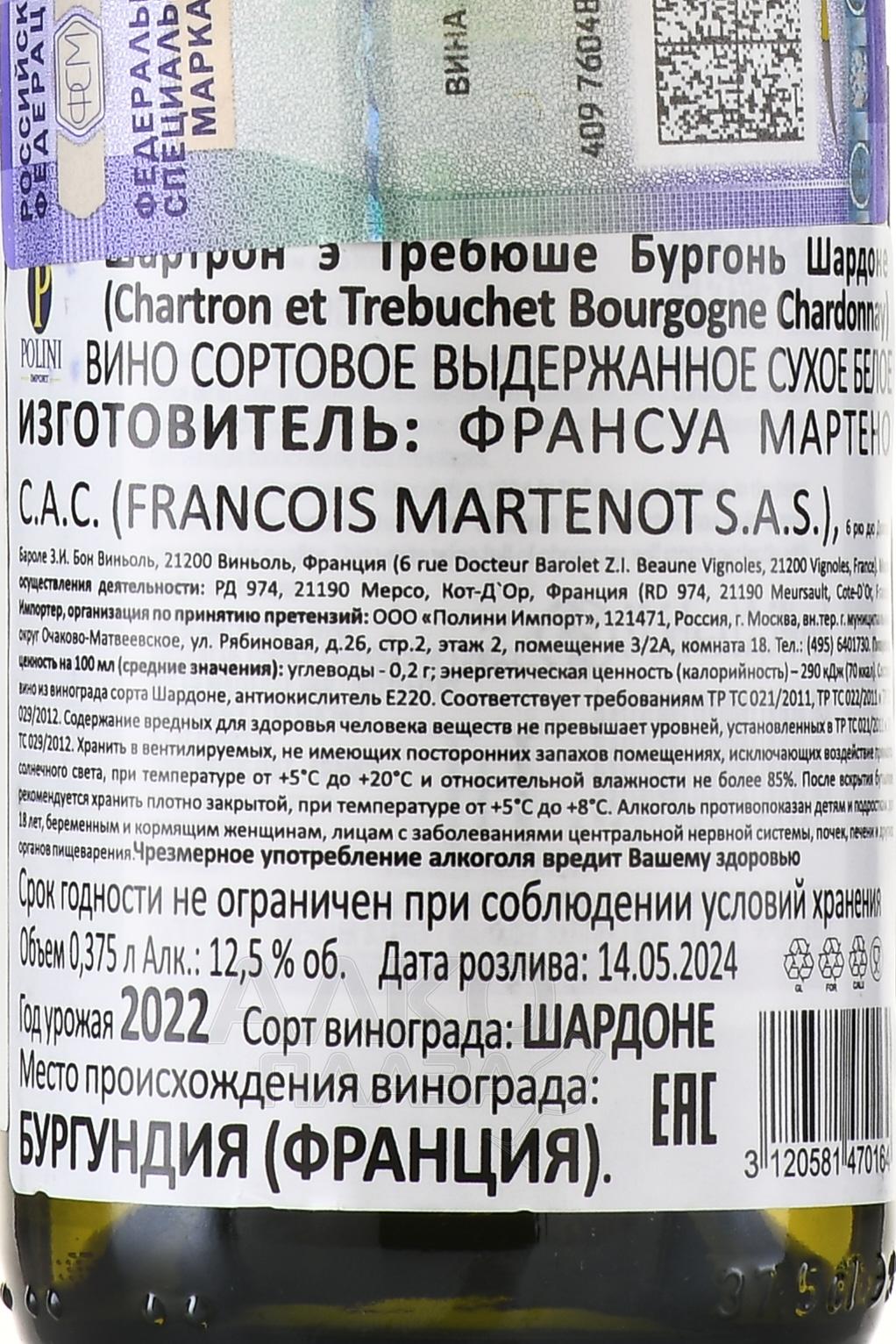 Белое сухое вино Chartron et Trebuchet Bourgogne Chardonnay 0,375 л — релиз от винного дома, который специализируется на классических апелласьонах Бургундии. Напиток выпущен под общим наименованием Bourgogne AOC и отражает базовый стиль бургундского Шардоне. Виноград собрали на участках с характерными известняково-глинистыми почвами, которые обеспечивают свежесть и чистую структуру сырья. Многообразие микротерруаров, объединившихся в этой бутылке, позволило сохранить баланс и стабильность стиля. Сбор проводился в оптимальной зрелости, а ферментация проходила под контролем температуры.