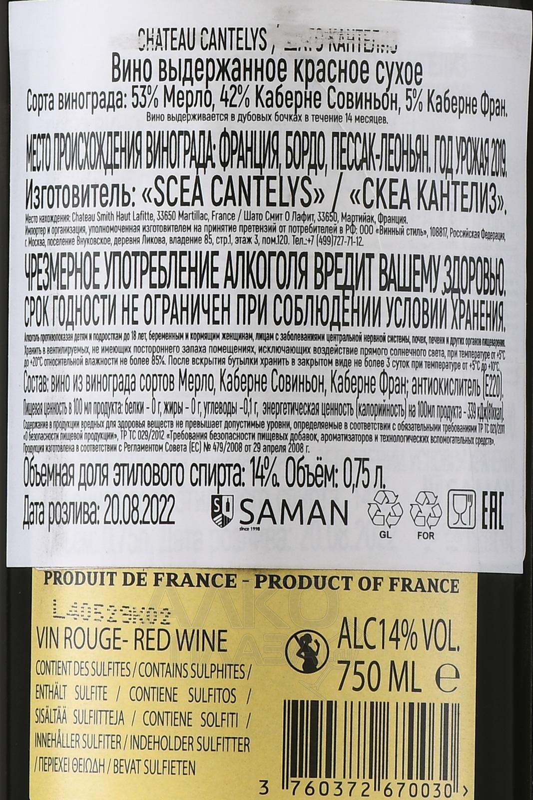 Chateau Cantelys Pessac-Leognan - вино Шато Кантелиз Пессак-Леоньян 0.75 л красное сухое