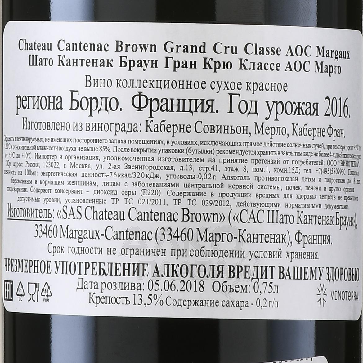 / Chateau Cantenac Brown Сайт alcoplaza.ru содержит информацию, не рекомендованную для лиц, которые не достигли возраста 18 лет. Чтобы осуществить вход на сайт, Вам необходимо подтвердить свой совершеннолетний возраст. Сведения, размещенные на сайте , не являются рекламой, носят исключительно информационный характер, и предназначены только для личного использования. Информация на сайте не является публичной офертой.