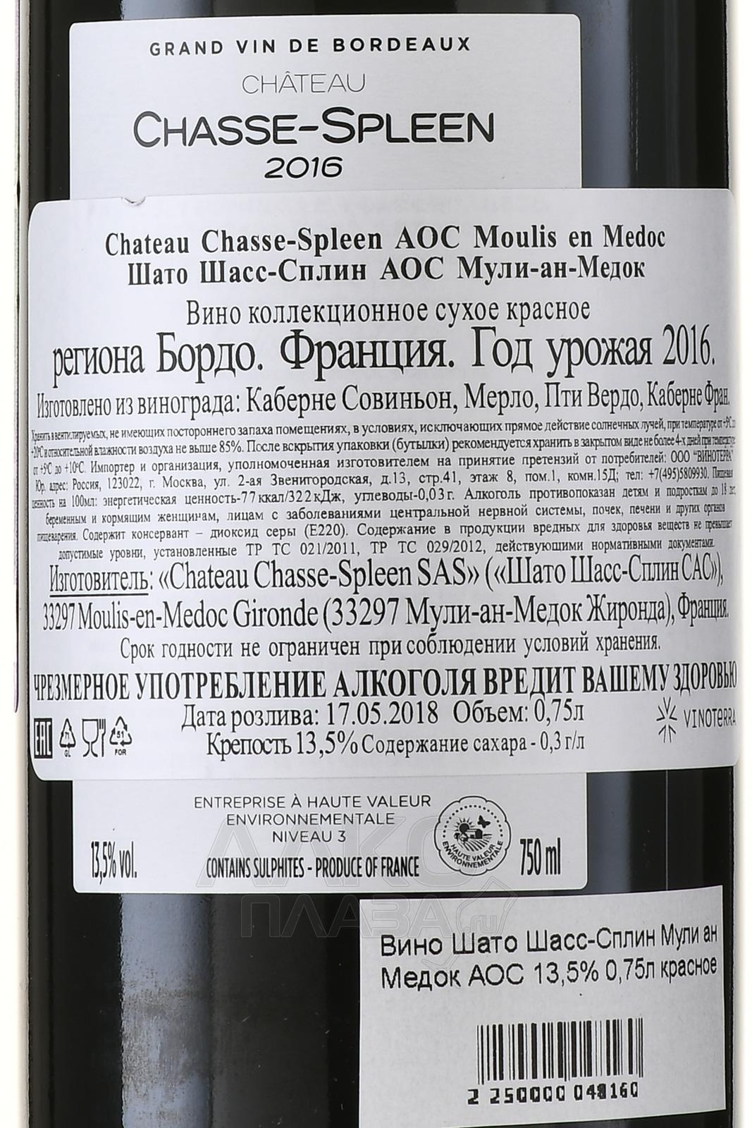 Красное сухое вино Chateau Chasse-Spleen Moulis en Medoc AOC 0,75 л производится в коммуне Мули-ан-Медок, расположенной на левом берегу Жиронды в регионе Бордо. История поместья восходит к XVIII веку, а его виноградники занимают участки с глинисто-гравийными и известковыми почвами, идеально подходящими для выращивания сортов Бордо. Виноградники получают выгоду от мягкого океанического климата, с умеренной влажностью и долгим солнечным периодом. Урожай собирают вручную, строго сортируя ягоды. Винификация проходит в стальных и бетонных чанах, с последующей выдержкой в дубовых бочках, часть которых новые, что придает сложность и потенциал к длительному хранению. В удачные годы напиток демонстрирует выразительный баланс танинов, кислотности и фруктовой насыщенности, что делает его образцом стиля Медока.