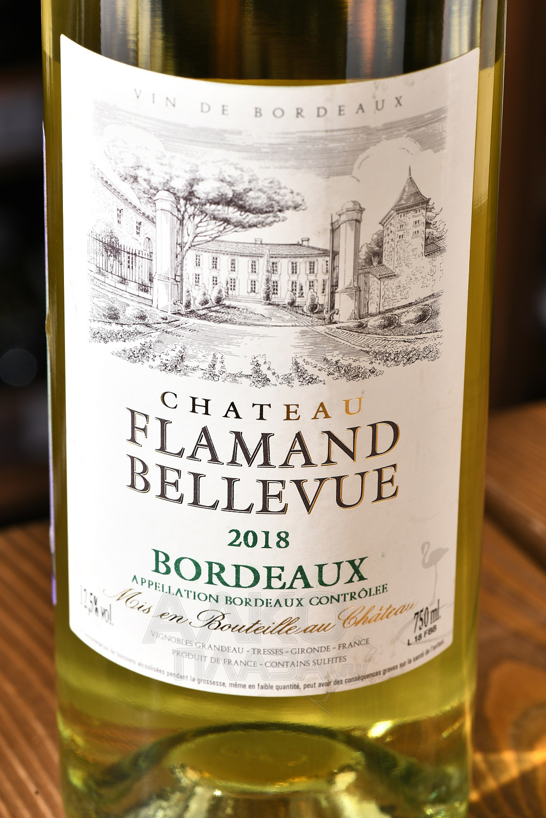 Белое сухое вино Chateau Flamand Bellevue Bordeaux AOC 2018 г. 0,75 л обладает свежим фруктовым профилем при крепости всего 12,5%. Содержание сахара в нем не превышает 2 г/л. Этот элегантный винтаж создан из собранного вручную винограда. Отжатый с помощью пневматического пресса сок ферментировали в стальных резервуарах, после чего напиток бы выдержан полгода на тонком осадке. Перед бутилированием вино отфильтровали.