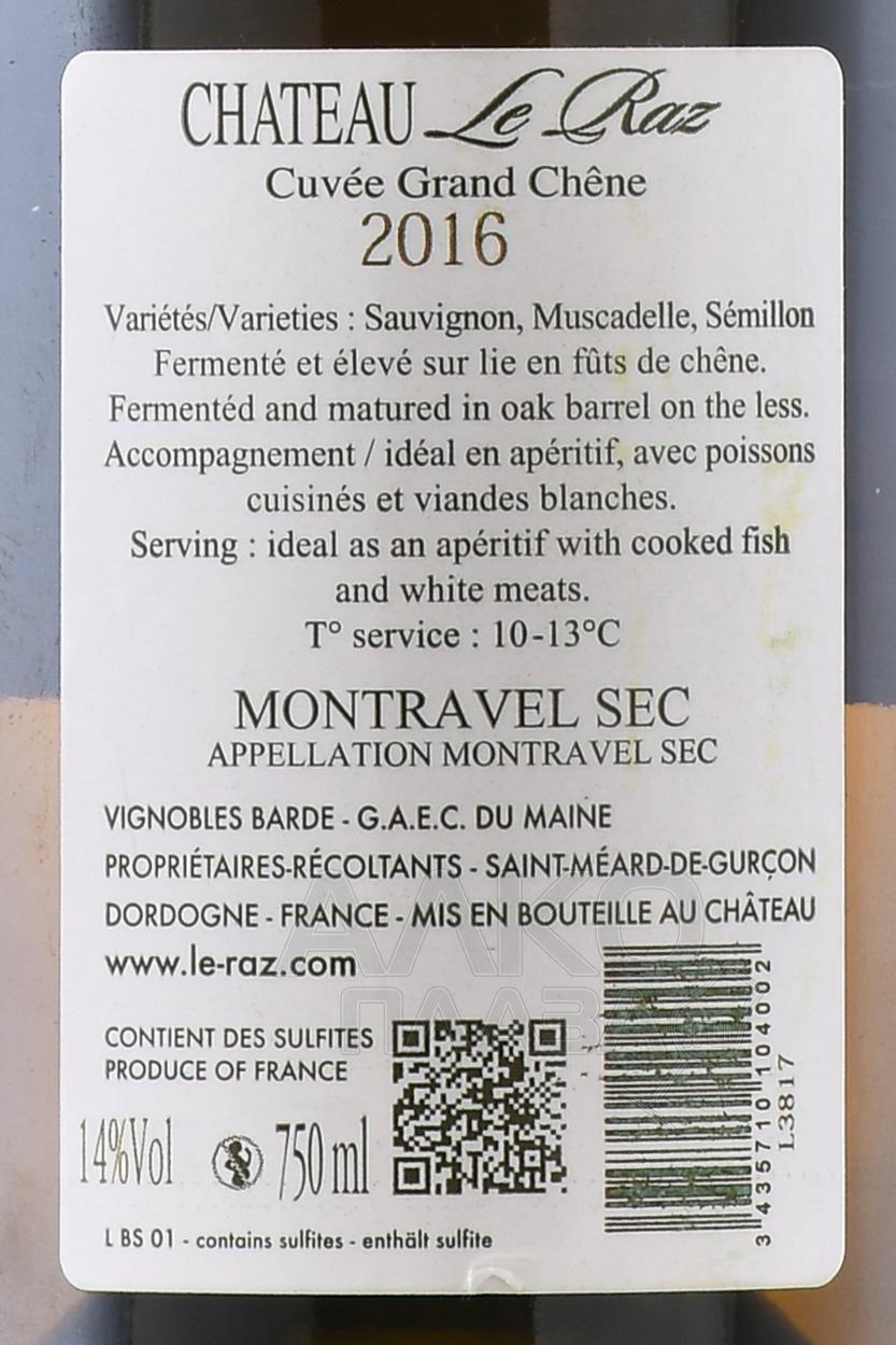 Белое сухое вино Chateau Le Raz Cuvee Grand Chene AOC Montravel Sec 0,75 л производится в юго-западной Франции, в апелласьоне Монравель, который входит в зону Бордо. Виноградники расположены на холмистых склонах с глинисто-известняковыми и кремнистыми почвами, что придает ягодам плотность и яркую кислотность. Кюве создается в семейном хозяйстве, история которого восходит к началу XX века. Здесь виноград собирают вручную, подвергают тщательной сортировке и ферментируют при контролируемой температуре, чтобы сохранить свежесть и яркий характер сырья. Урожай последнего десятилетия в этом регионе отличается балансом тепла и дождей, что позволило получить спелые и гармоничные плоды. Технология выдержки на тонком осадке усиливает текстуру напитка и подчеркивает его минеральность.