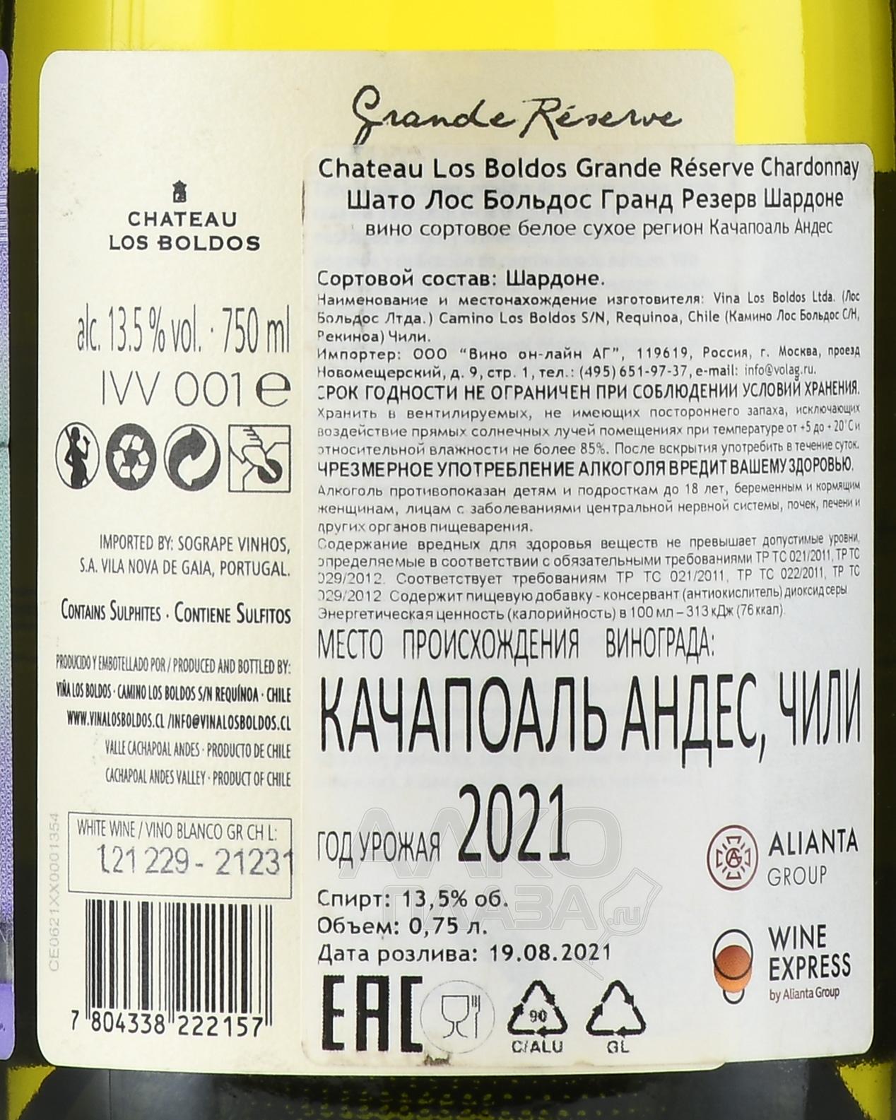 Chateau Los Boldos Grande Reserve Chardonnay - вино Шато Лос Болдос Гранд Резерв Шардоне 0.75 л белое сухое