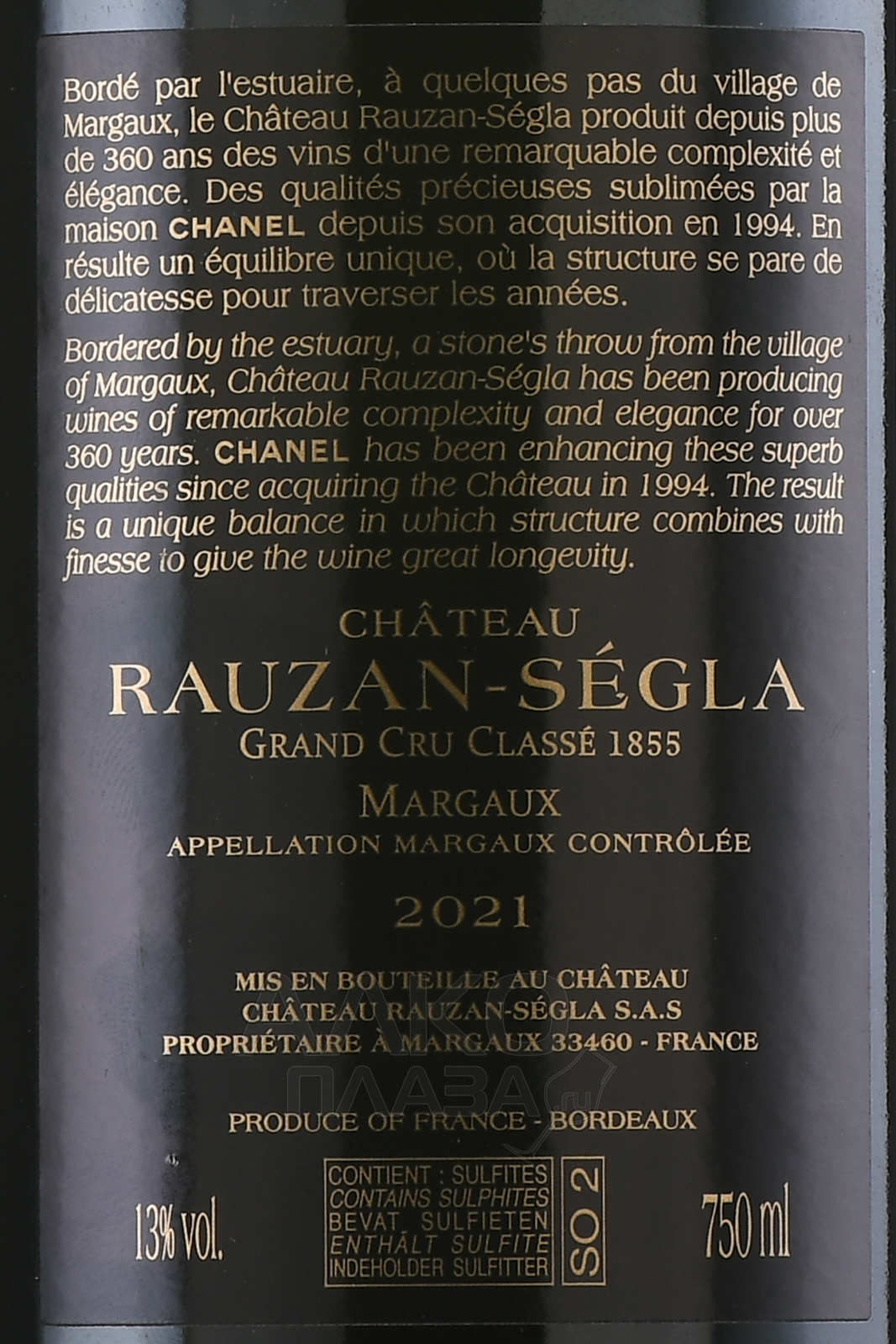 / Chateau Rauzan-Segla Сайт alcoplaza.ru содержит информацию, не рекомендованную для лиц, которые не достигли возраста 18 лет. Чтобы осуществить вход на сайт, Вам необходимо подтвердить свой совершеннолетний возраст. Сведения, размещенные на сайте , не являются рекламой, носят исключительно информационный характер, и предназначены только для личного использования. Информация на сайте не является публичной офертой.