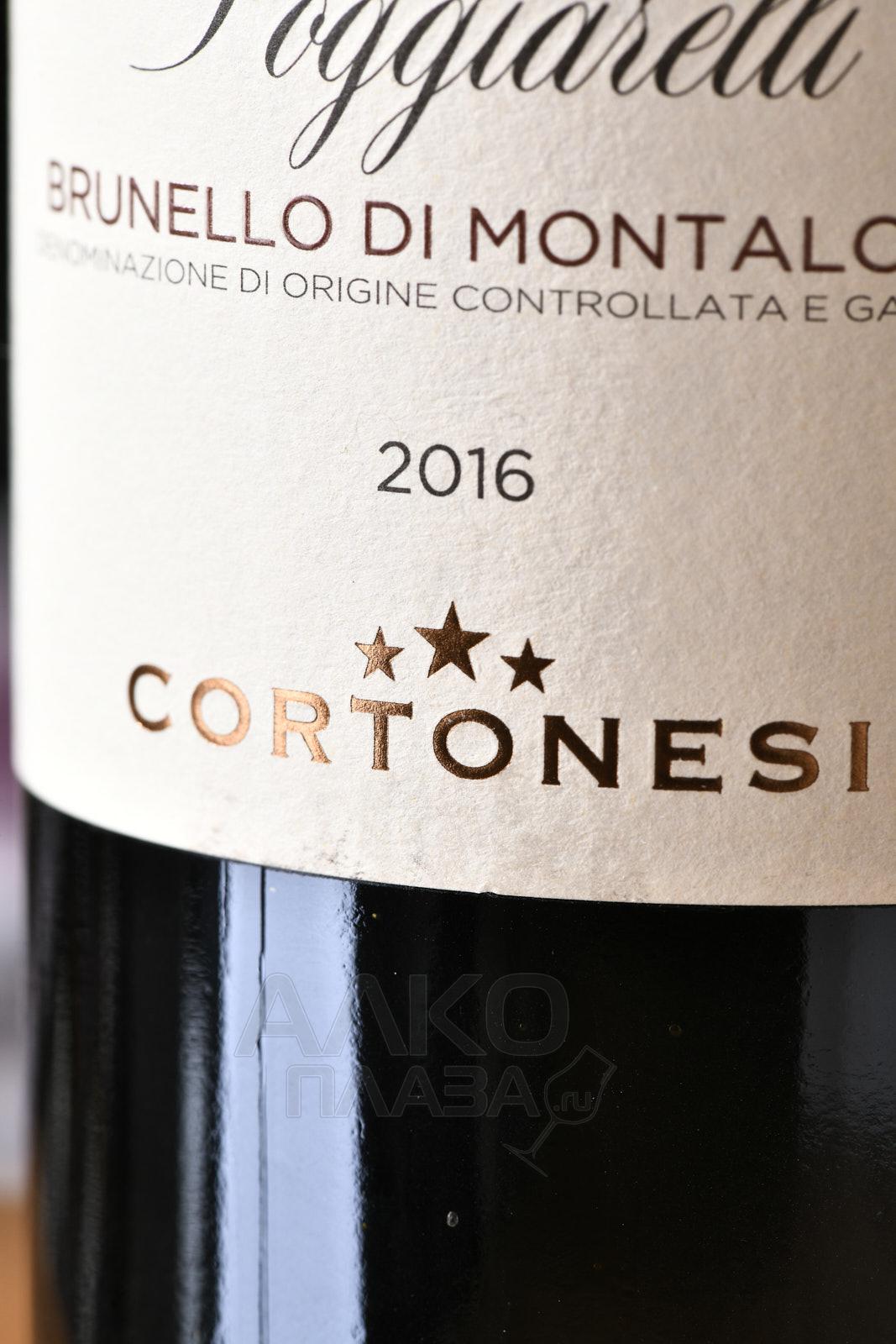 Красное сухое вино Cortonesi Poggiarelli Brunello di Monatalcino 2016 г. 0,75 л имеет высшую категорию DOCG и производится в строгом соответствии с классической технологией из урожая одного года. Сорт Санджовезе Гроссо, выступающий в роли сырья, собирают вручную на винограднике Поджарелли, который был заложен в 70-е годы прошлого века. Вино проходит длительную выдержку — 2 года в бочках из французского дуба и не менее полугода в бутылках. Вариация 2016 года была выпущена тиражом 4 тысячи бутылок. Потенциал ее хранения составляет 25-30 лет.