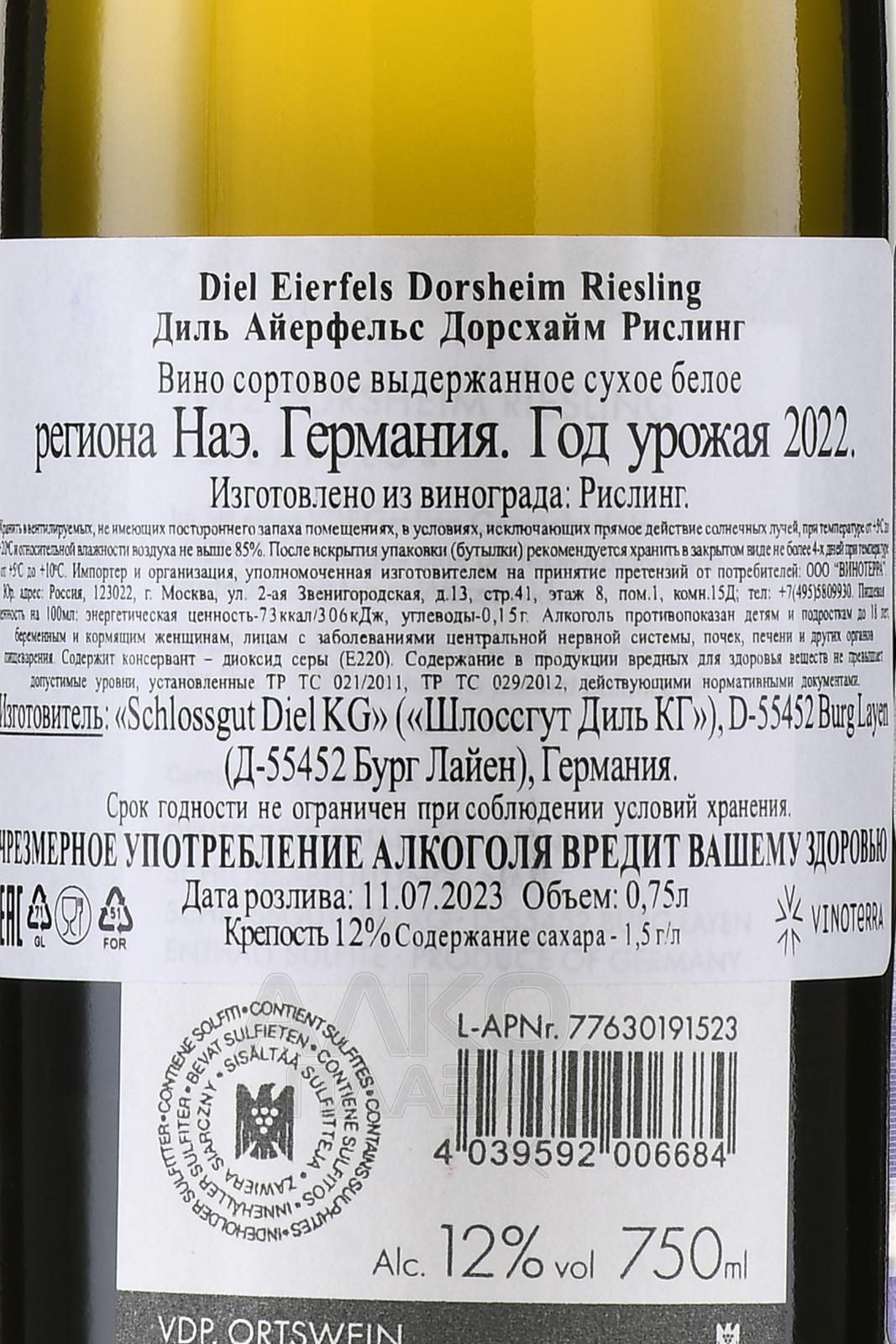 Diel Eierfels Dorsheim Riesling - вино Диль Айерфельс Дорсхайм Рислинг 0.75 л белое сухое