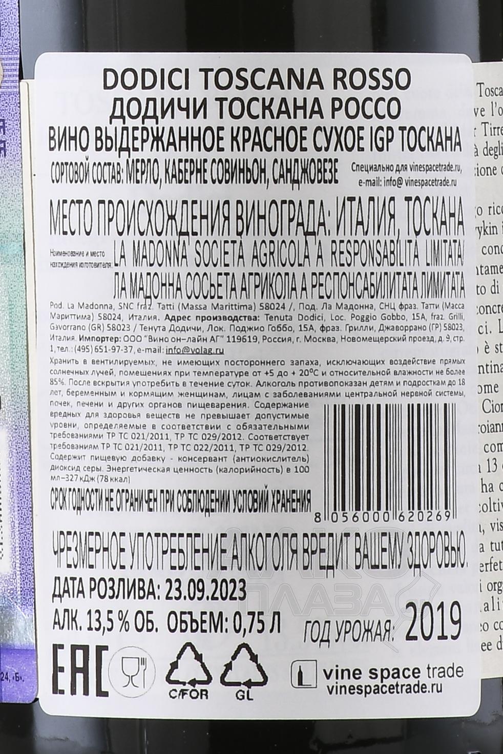 Dodici Toscana Rosso IGP - вино Додичи Тоскана Россо ИГП 0.75 л красное сухое
