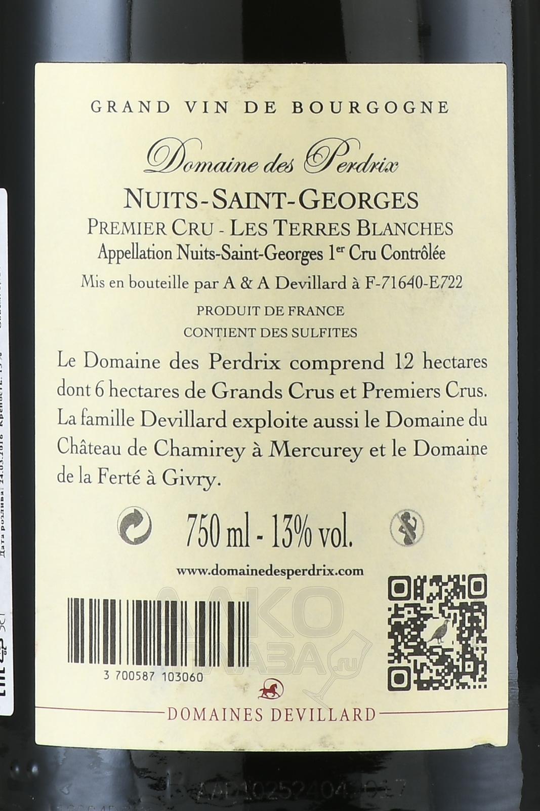 Domaine des Perdrix Nuits-Saint-Georges Premier Cru Les Terres Blanches - вино Домен де Пердри Нюи-Сен-Жорж Премье Крю Ле Тер Бланш 0.75 л красное сухое