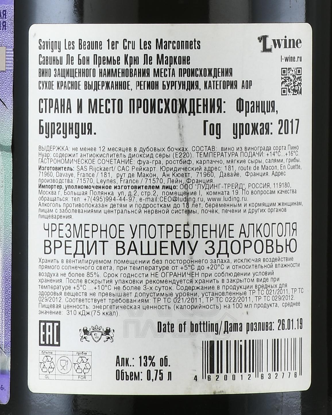 Domaine Rijckaert Savigny les Beaune Cru Les Marconnets - вино Савиньи Ле Бон Премье Крю Ле Марконе Рейкарт 0.75 л красное сухое
