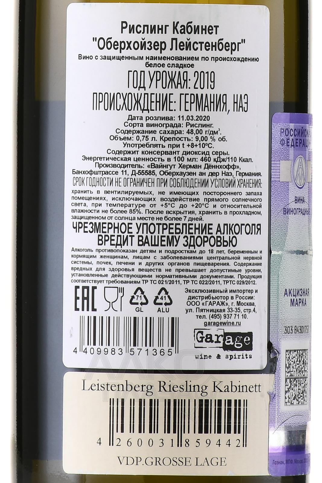 Белое сладкое вино Donnhoff Oberhauser Leistenberg Riesling Kabinett 0,75 л происходит из региона Наэ в Германии. Виноградник расположен на крутом южном склоне у реки Наэ. Почвы здесь состоят из сланца с примесью вулканических пород. Каменистый субстрат хорошо аккумулирует тепло и обеспечивает дренаж, что способствует равномерному созреванию ягод. Прохладный климат сохраняет высокую кислотность и формирует тонкий ароматический профиль. Категория Kabinett указывает на сбор винограда при умеренной зрелости. Урожай собирают вручную. Ферментация проходит при контролируемой температуре, чаще в нейтральных ёмкостях или больших традиционных бочках. Выдержка направлена на сохранение чистоты сорта и выразительности участка.
