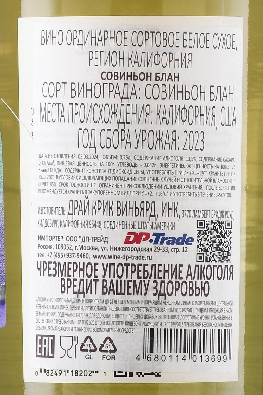Dry Creek Vineyard Sauvignon Blanc - вино Драй Крик Совиньон Блан 0.75 л