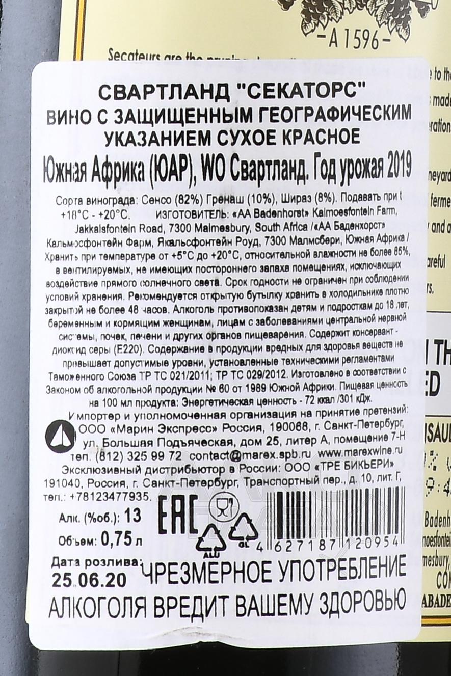 Красное сухое вино Secateurs Swartland WO Cinsault Shiraz Grenache 0,75 л представляет из себя купаж трех сортов, которые дополняют друг друга. Урожай собирают с низкоурожайных участков со старыми лозами, высаженными на горных склонах. После деликатного прессования производится алкогольное брожение в бетонных резервуарах. Созревание готового вина проходит в старых дубовых бочках и бетоне на протяжении 7 месяцев.