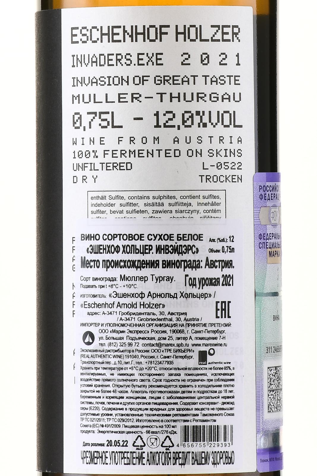 Eschenhof Holzer Invaders - вино Эшенхоф Хольцер Инвэйдэрс 0.75 л белое сухое