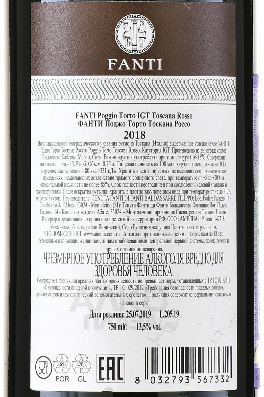 Fanti Poggio Torto Rosso Toscana IGT - вино Фанти Поджио Торто Россо Тоскана 0.75 л красное сухое